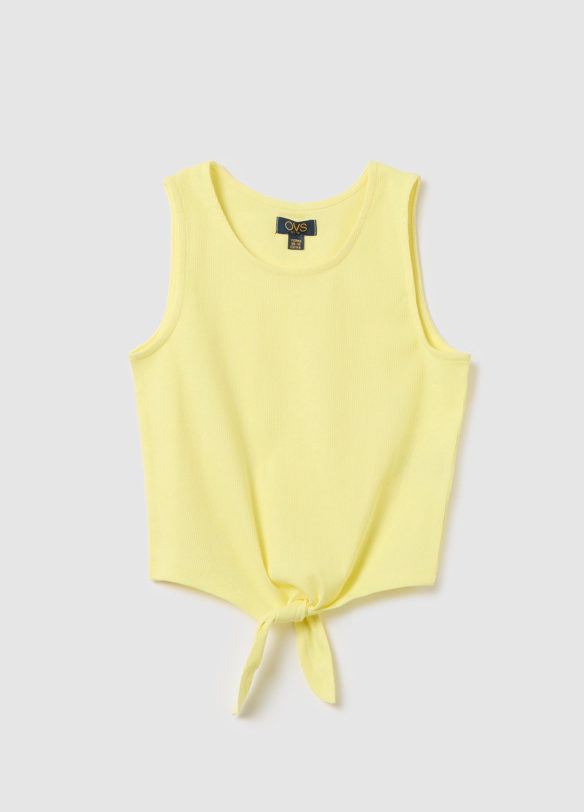 Ovs Kids Stretch Cotton Vest. Slim Fit. Thin Straps And Decorative Bow On The Front.