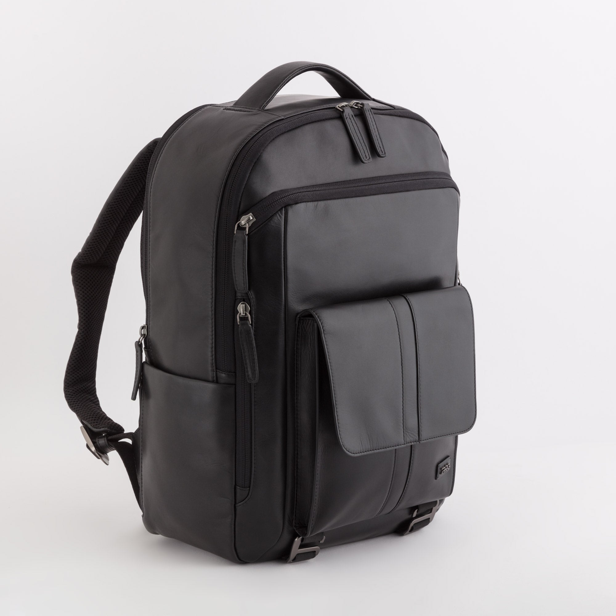 Backpack from the Hi Pro line by Carpisa made of smooth and semi-shiny leather with a geometric and modern design, characterized by squarer shapes and functional details with attention to the smallest details. Equipment: top handle, adjustable shoulder straps, bottom straps with multifunction metal hooksPockets: front zip pocket, main compartment with multi-layer organization for documents and accessories, padded compartment for laptops up to 15.6"Occasions of use: ideal for work, city trips or business tripsPerfect for the dynamic and professional man who wants a capacious backpack, organized and well-groomed in look, able to contain everything you need for a day of work.