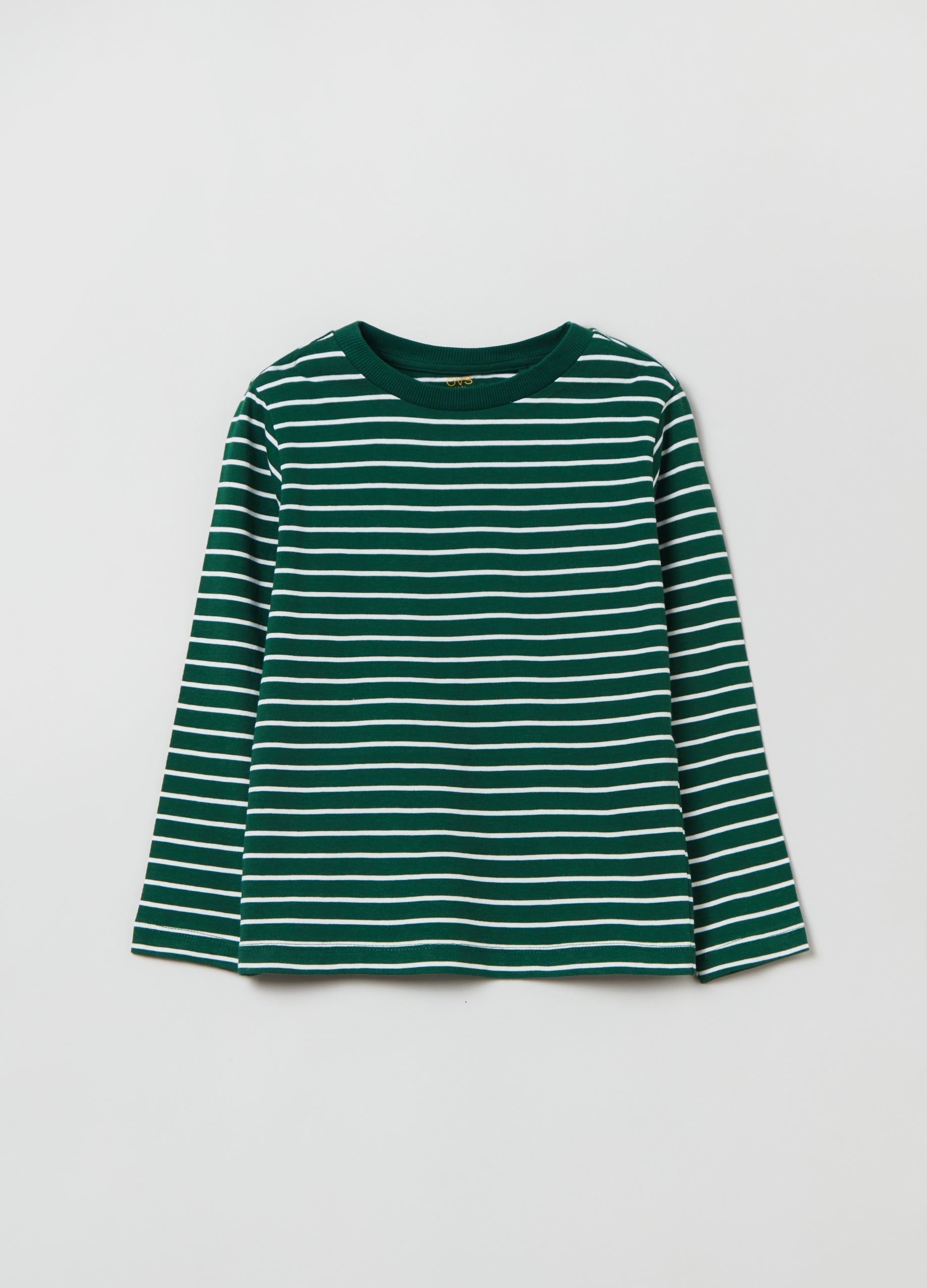 100% cotton T-shirt with long sleeves. Round ribbed neck. Two-tone striped pattern.