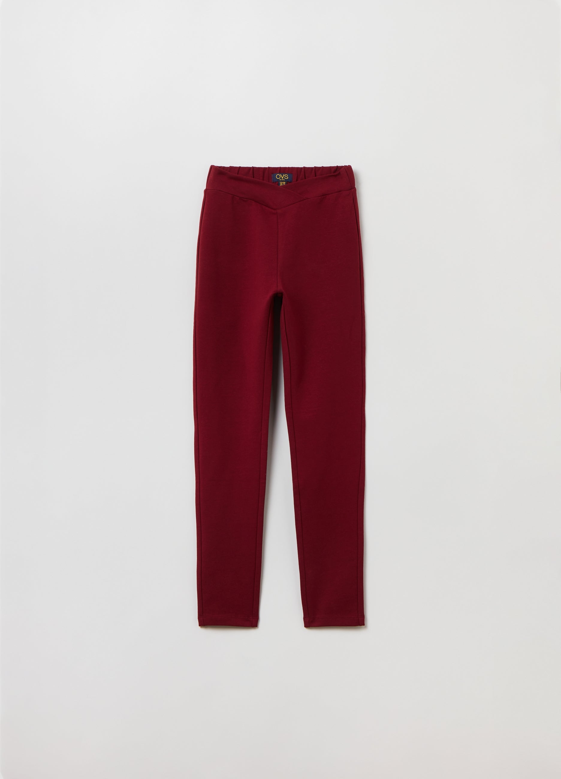 Stretch cotton treggings. High waist with elastic on the back and crossover front. Two back patch pockets.