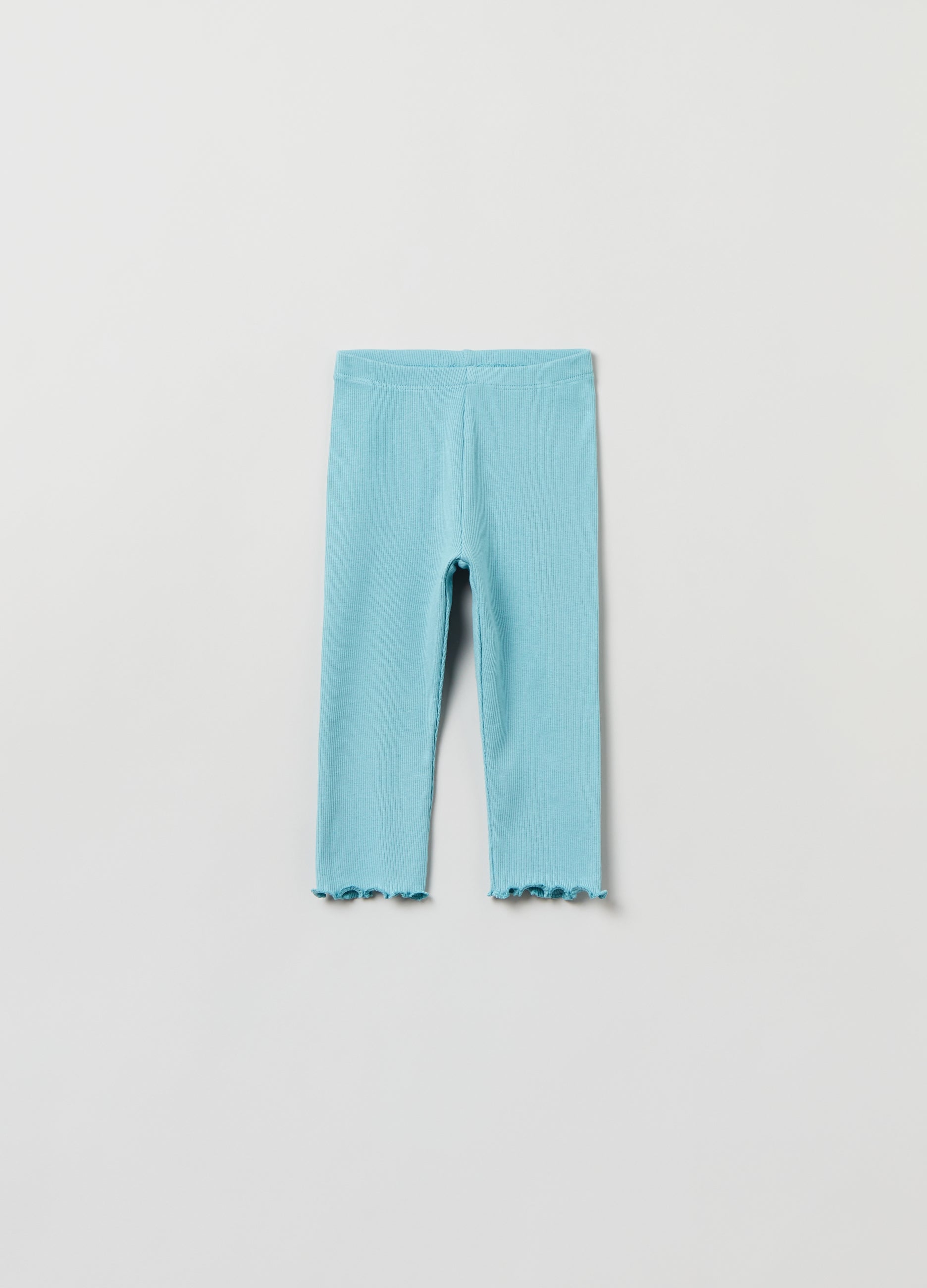 Ribbed leggings in stretch cotton with wavy edge. Elasticated waist.