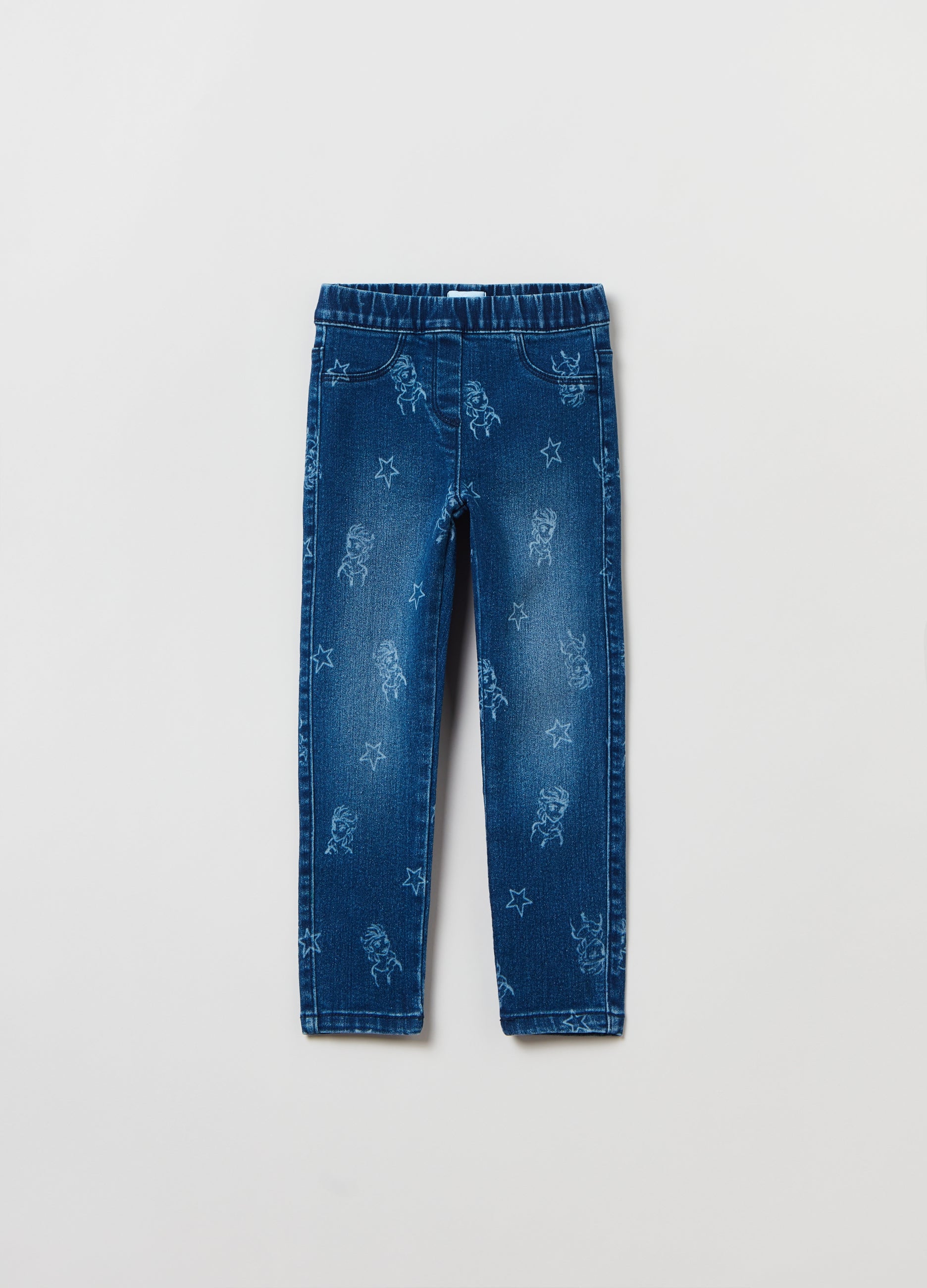 Jeggings in stretch cotton-viscose blend. Elasticated waist. Two false pockets on the front and two patch pockets on the back. All-over Disney Frozen Elsa print.