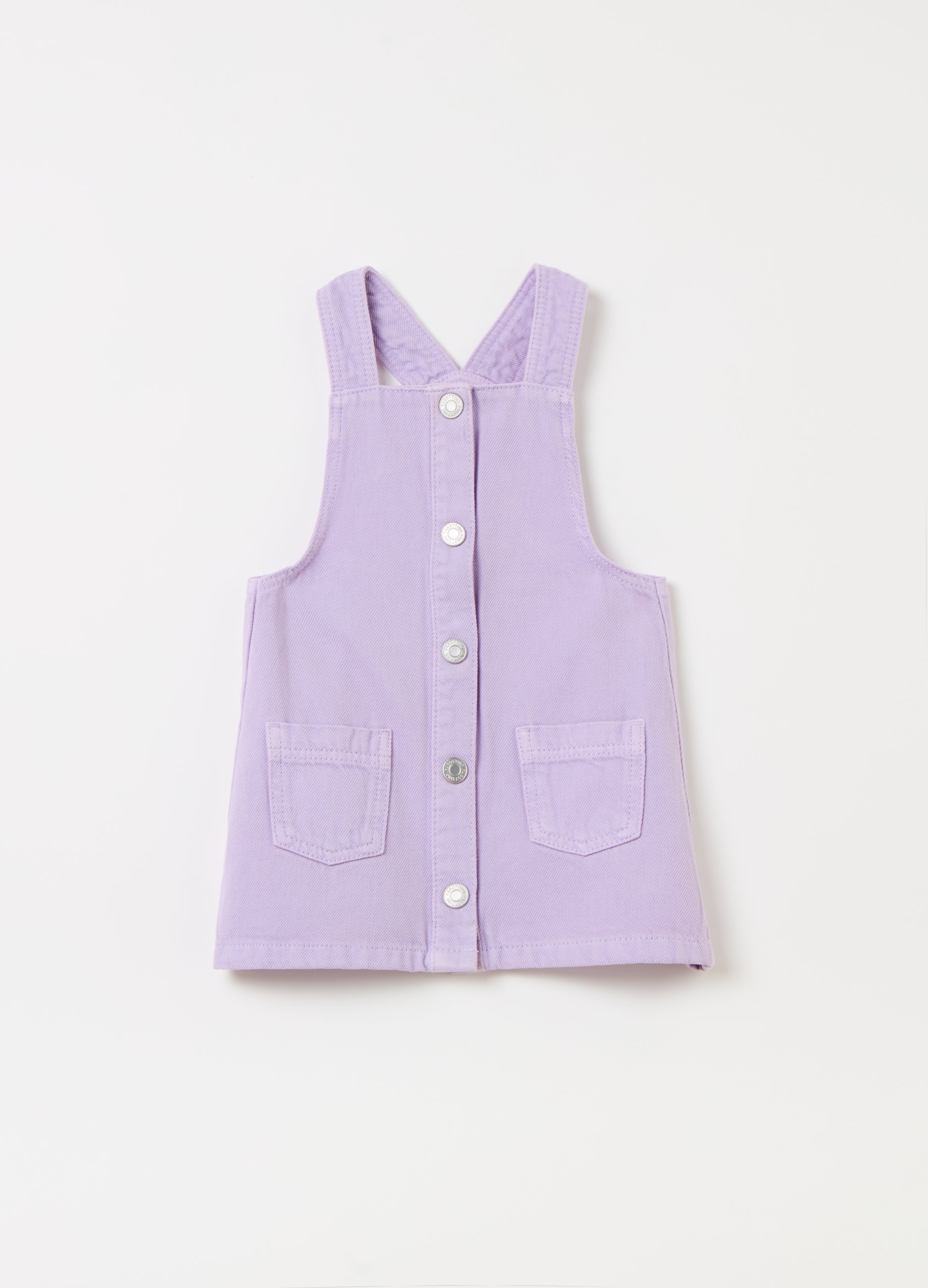 Pinafore in 100% cotton denim. Two patch pockets on the front. Snap-button fastening.