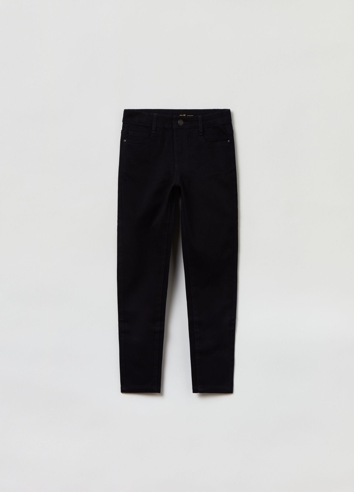 Skinny-fit trousers in stretch cotton. Five pockets. Zip and button fastening.
