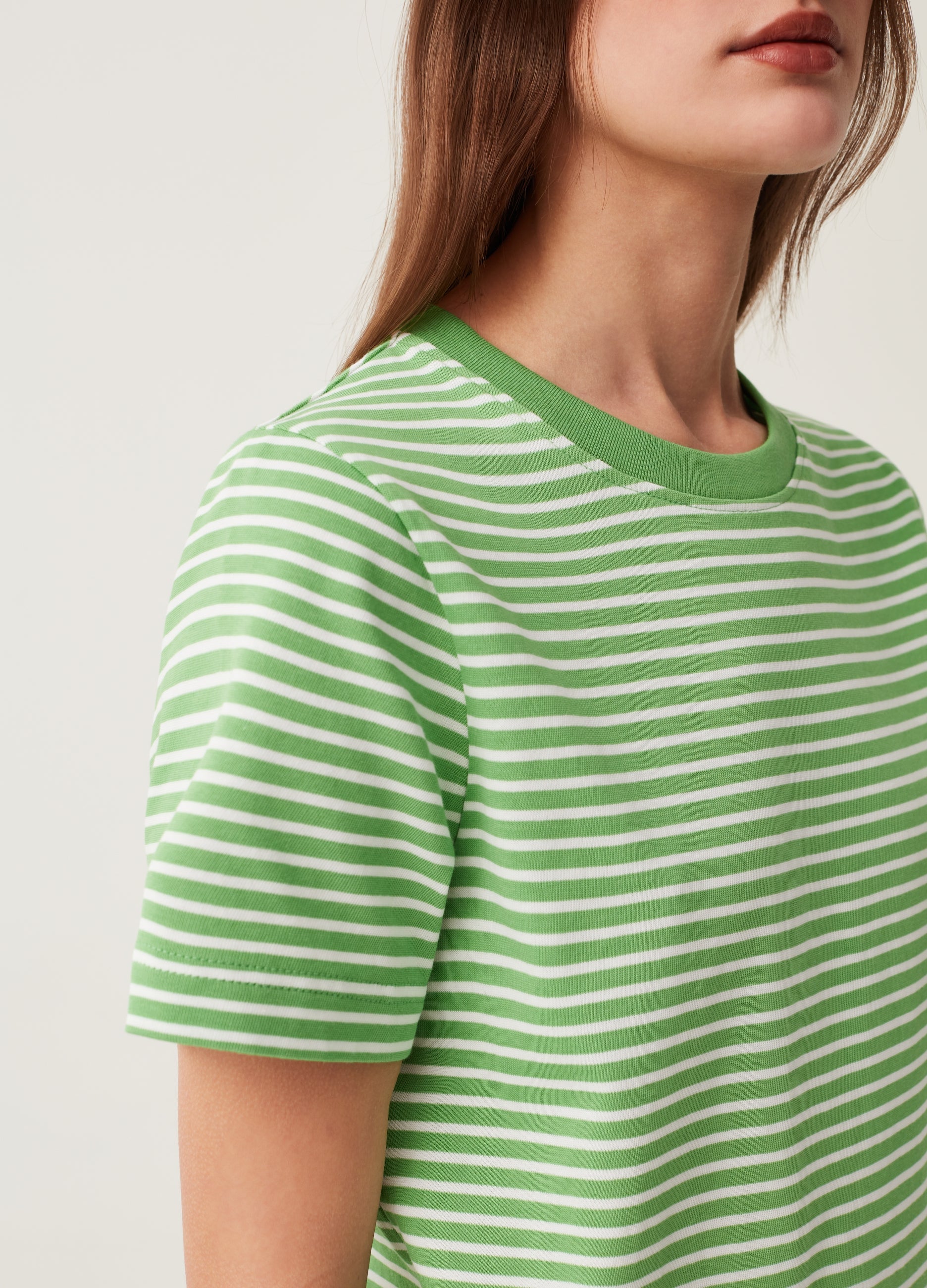 100% cotton T-shirt with all-over striped print. Round, ribbed neck.