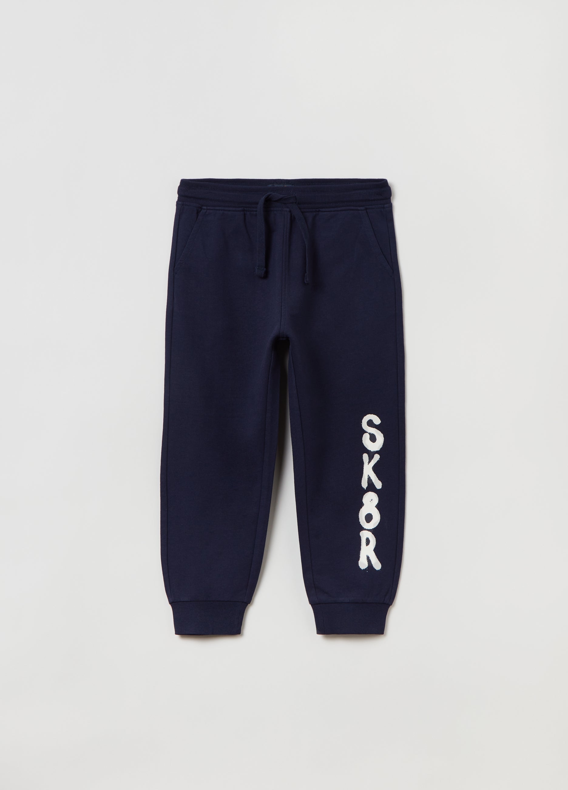 Fleece joggers in 100% cotton with drawstring. Two slant pockets and one patch pocket on the back. Lettering print on the hem.