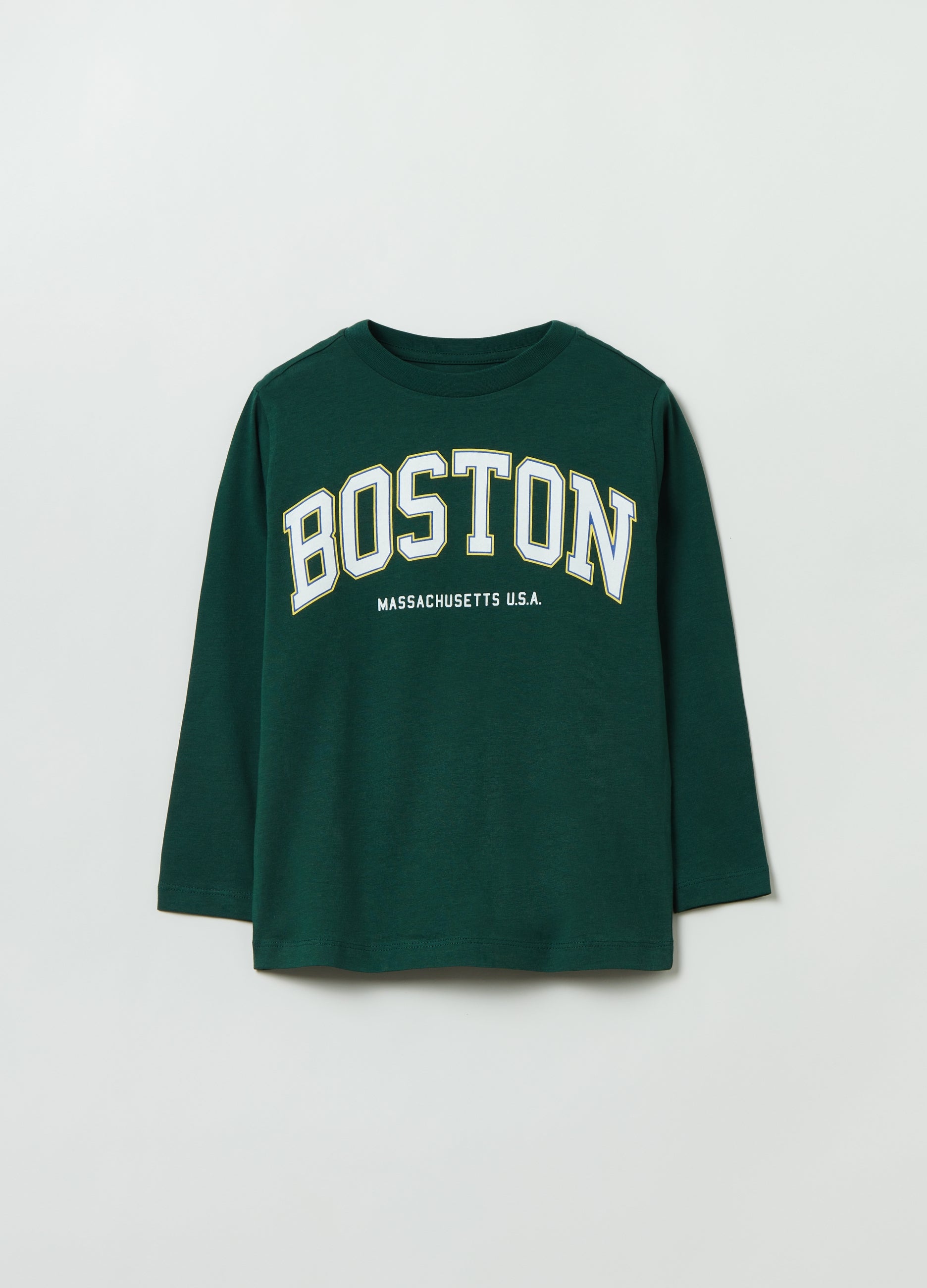100% cotton T-shirt with long sleeves. Round neck. Printed lettering on the front.