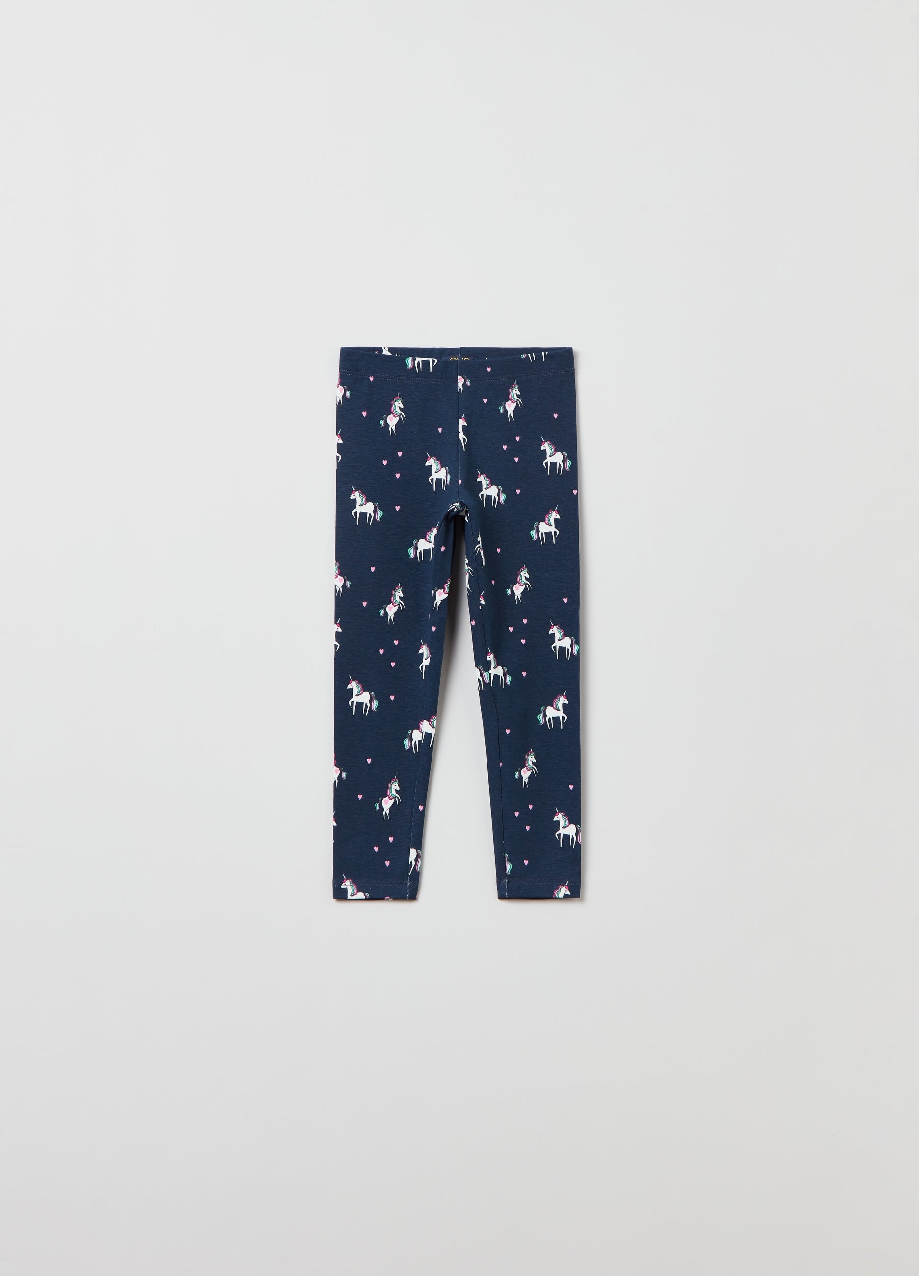Stretch cotton leggings. Elasticated waist. All-over unicorns and hearts print.