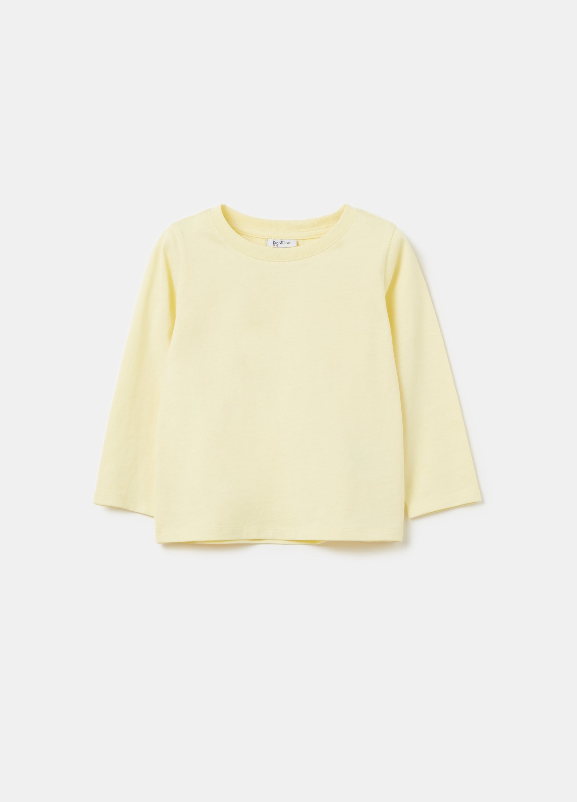 Solid colour 100% cotton T-shirt with long sleeves. Round neck.