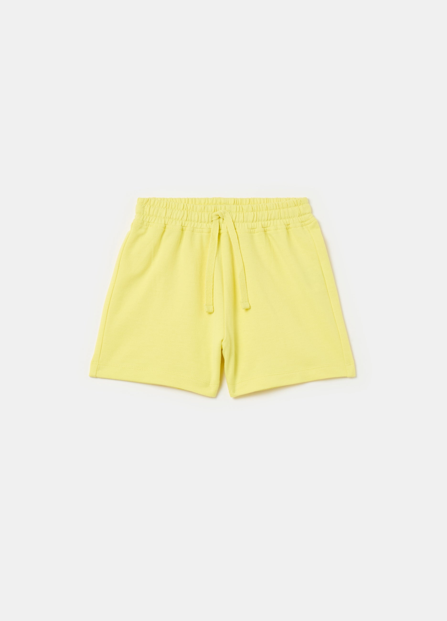 Shorts in 100% cotton fleece. Stretch waist with sash drawstring.