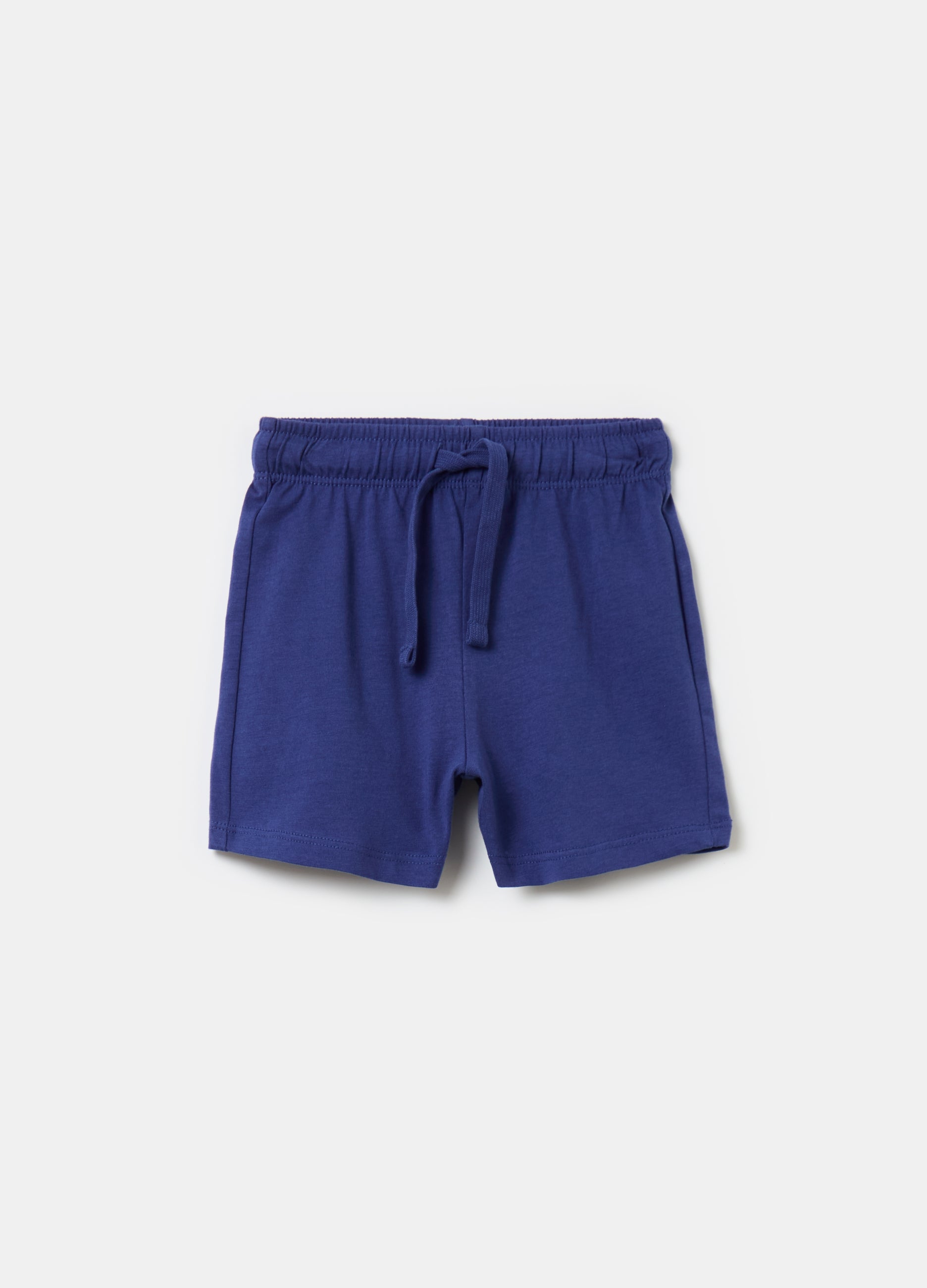 100% cotton shorts. Stretch waist with sash drawstring. One back patch pocket.