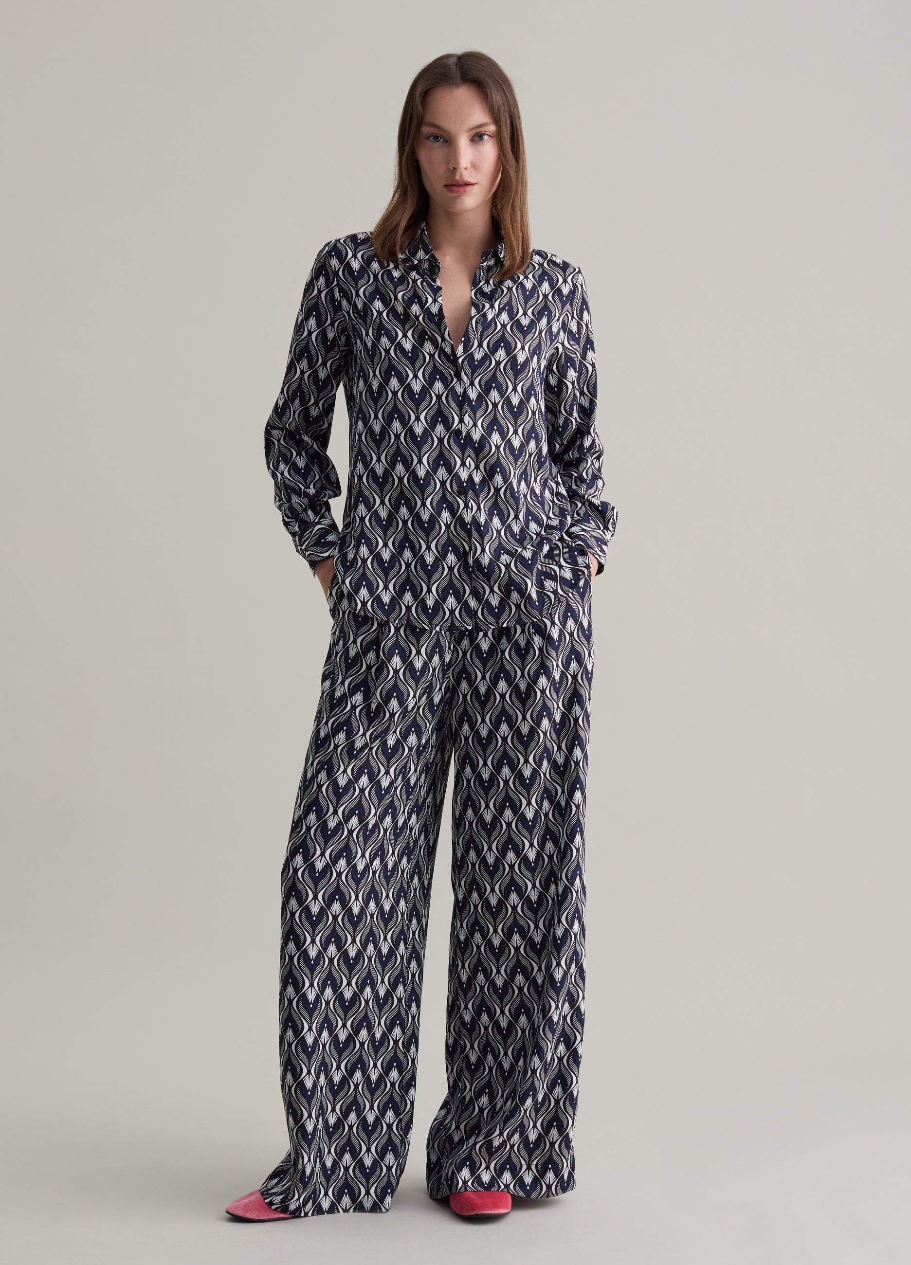 PIOMBO shirt with liberty pattern print. Bluff collar. Buttoned cuffs. Button fastening. Matching trousers available. This item is made using recycled polyester.
