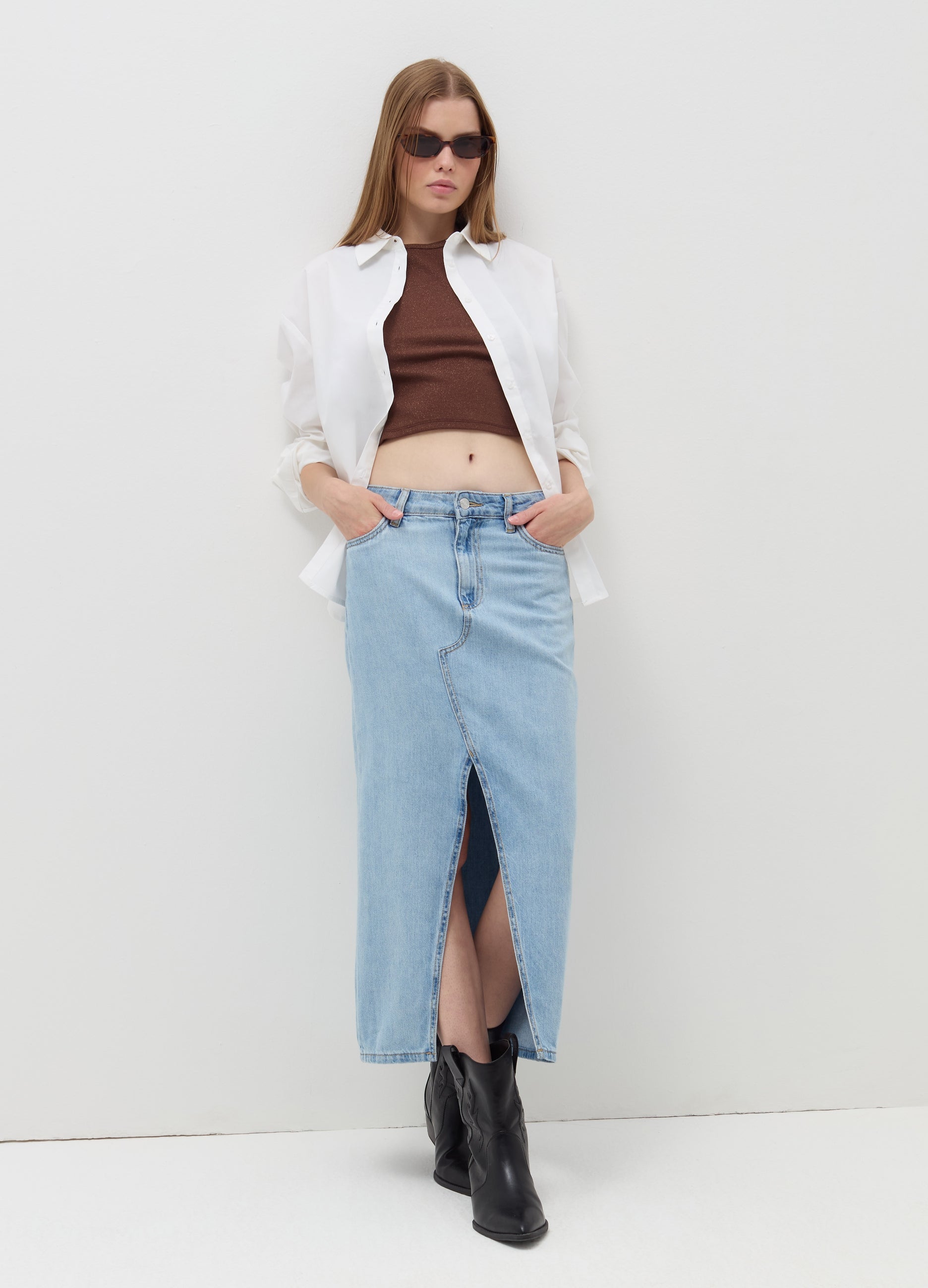 B.Angel Long Skirt In Recycled Cotton Denim And Tencel™ Lyocell. Five Pockets. Central Vent In The Front. Zip And Button Fastening.