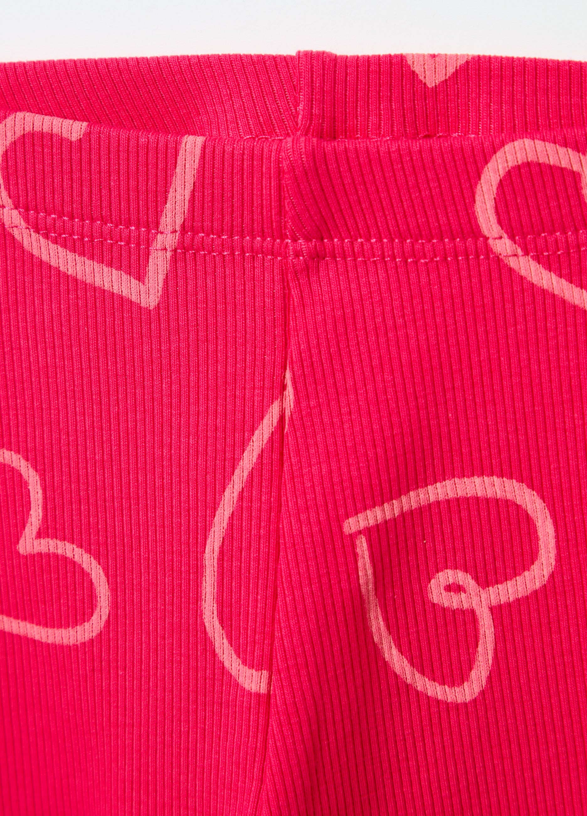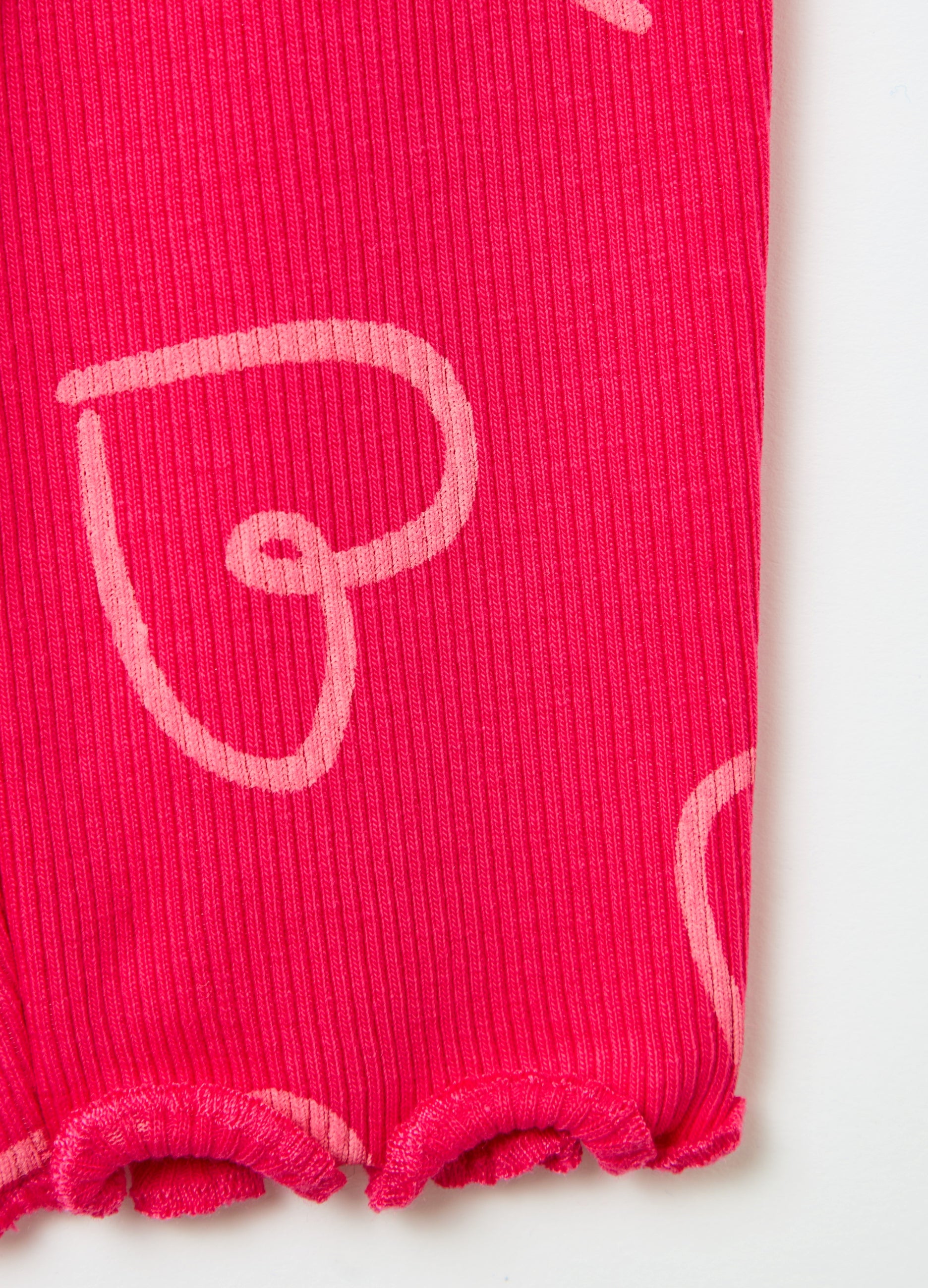 Ribbed stretch cotton leggings. Elasticated waist. All-over hearts print. Wavy hem.