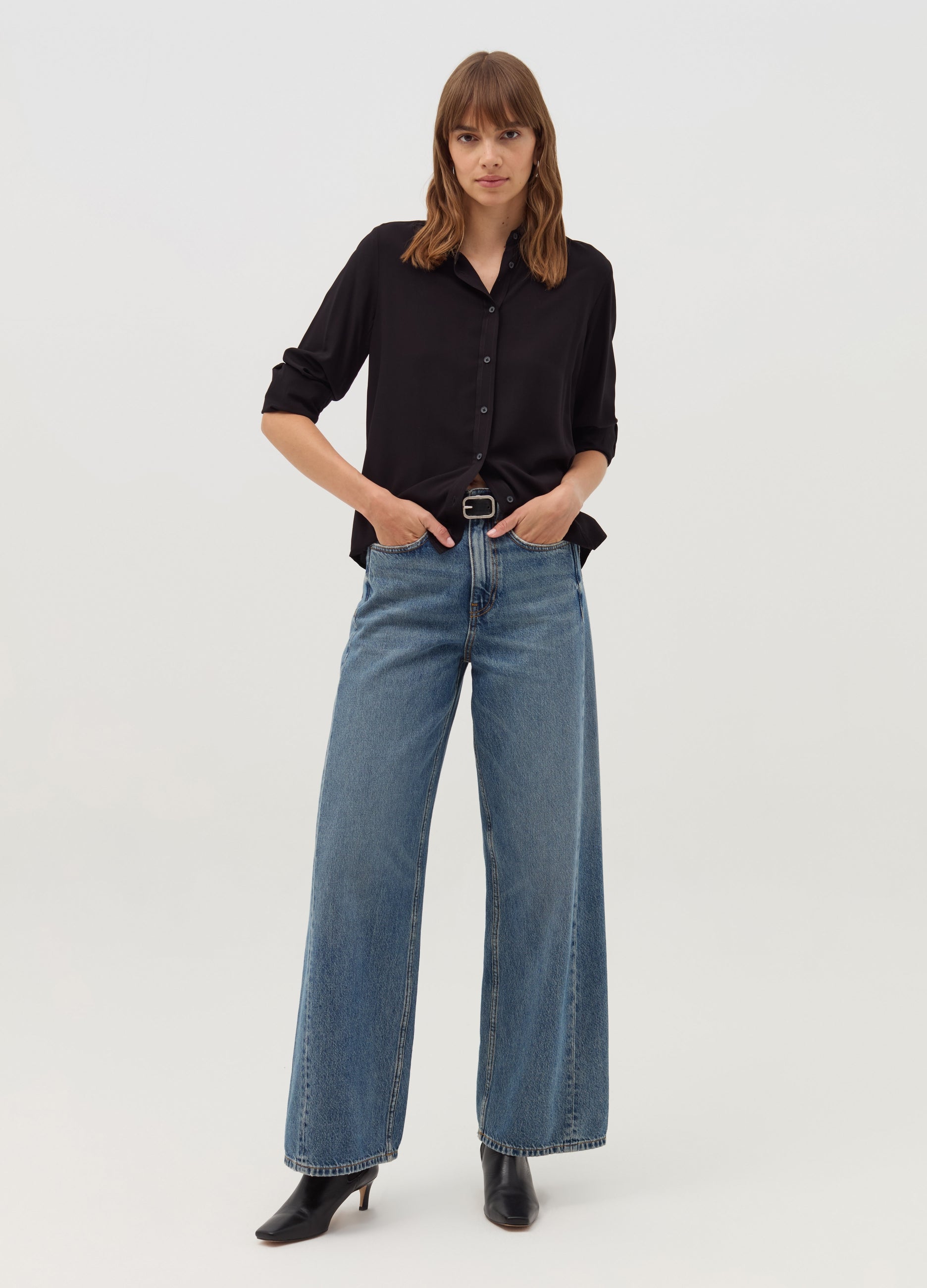 Solid Colour Shirt In Fscâ®-Certified Sustainable 100% Viscose. Bluff Collar. Buttoned Cuffs. Button Fastening.