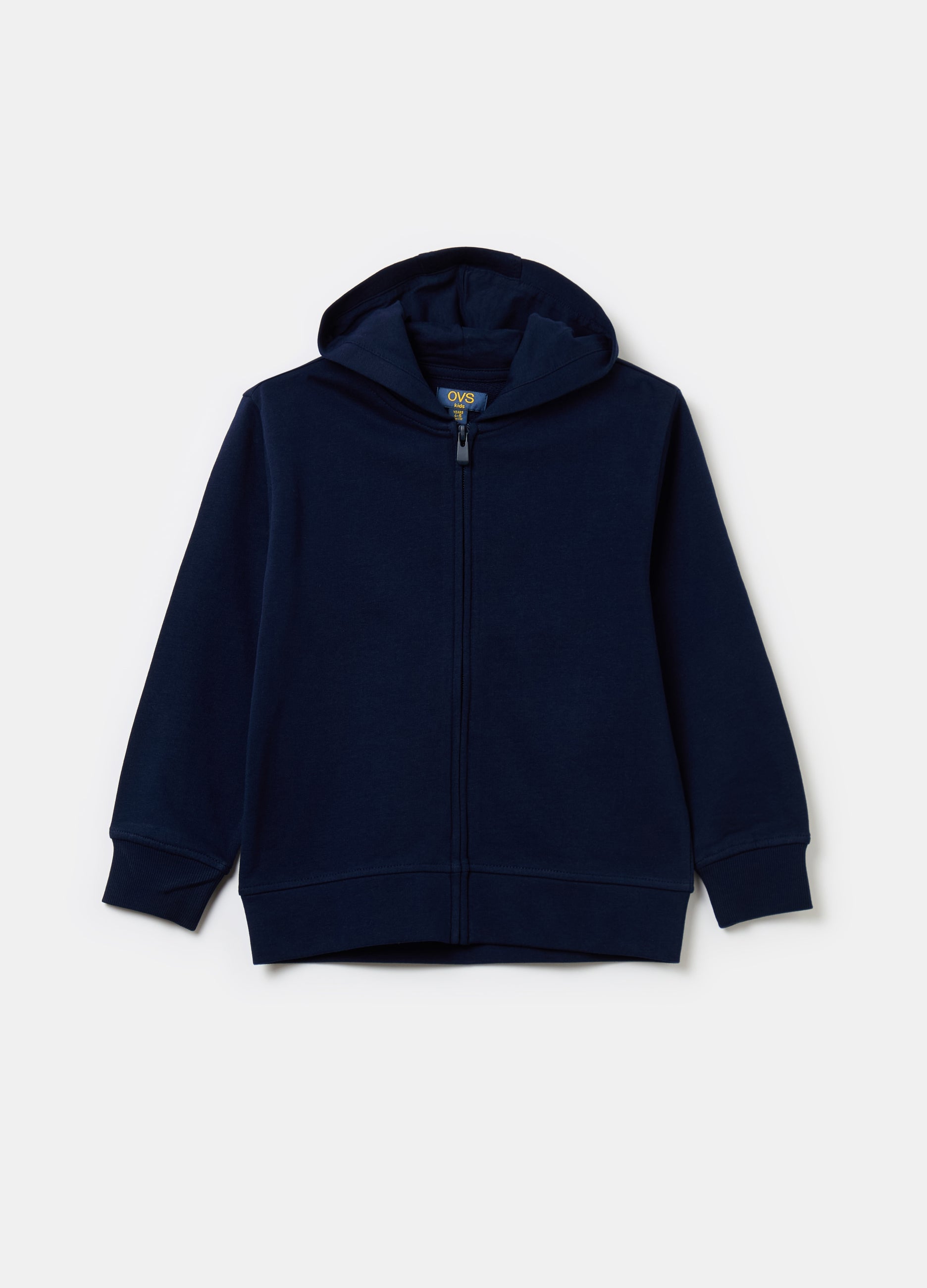 Full-zip sweatshirt in 100% organic cotton French terry (non-brushed fleece lining) with hood. Ribbed cuffs.