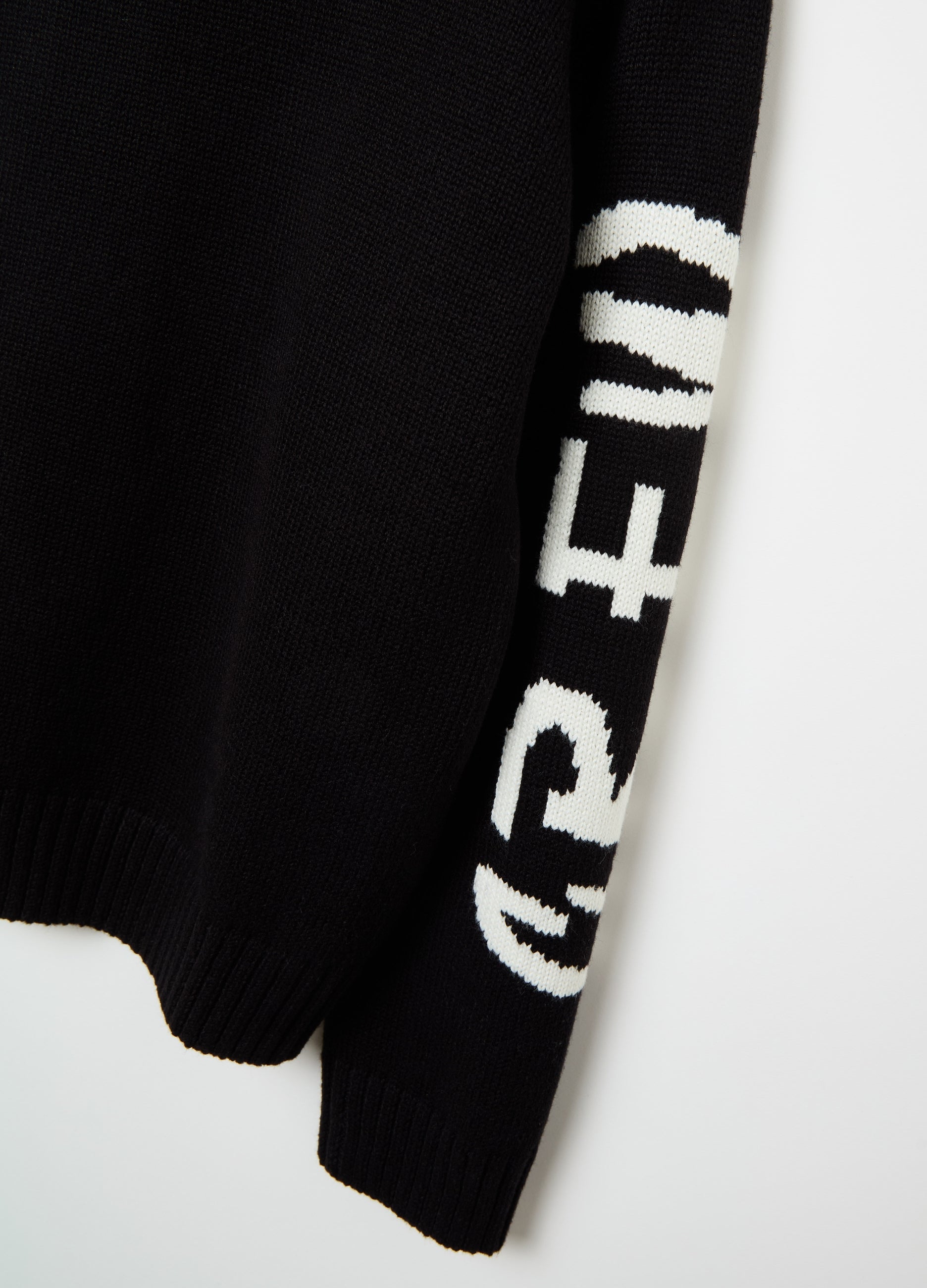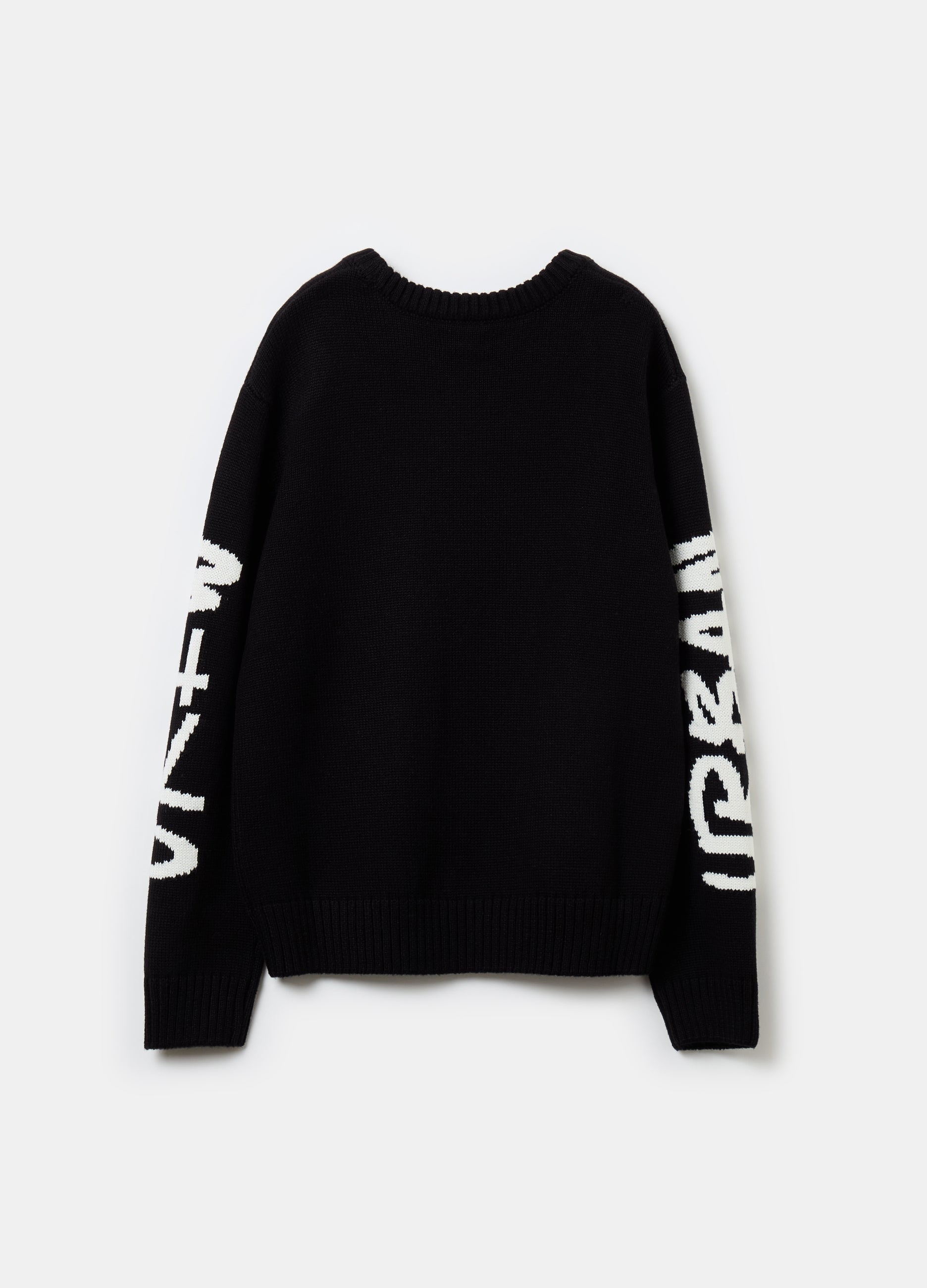 Pullover in cotton blend yarn. Round neck. Oversized fit with drop shoulders. Jacquard lettering design on the sleeves. Ribbed trims.