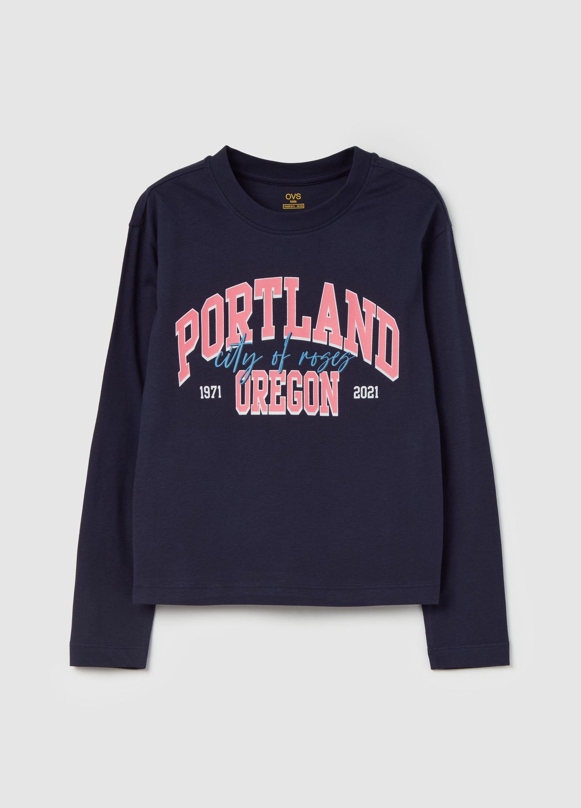 100% cotton T-shirt with long sleeves. Round neck. Printed lettering on the front.