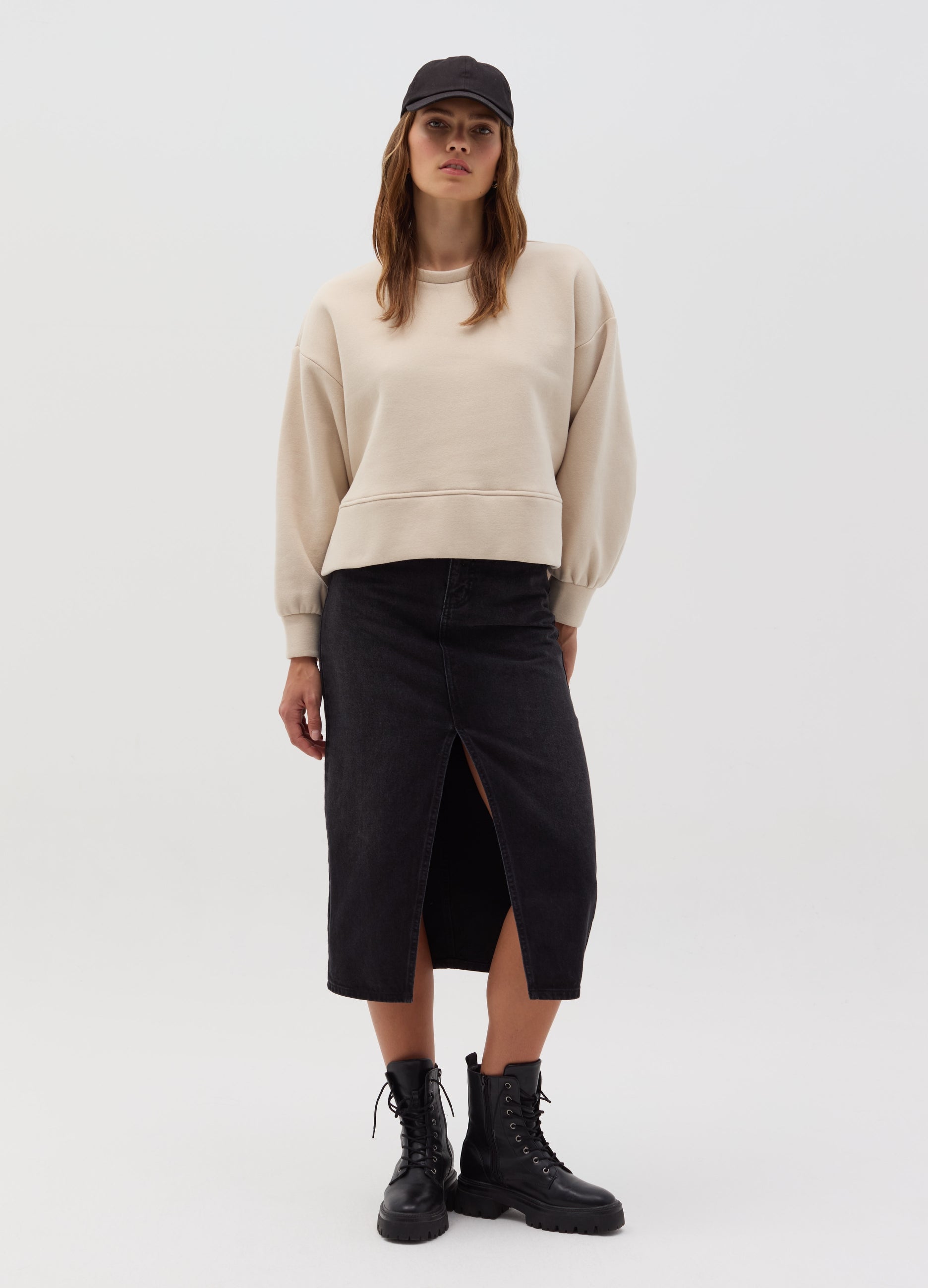Sweatshirt In Cotton Blend. Round Neck. Dropped Shoulder. Long Drop Back Hem. Side Slits.