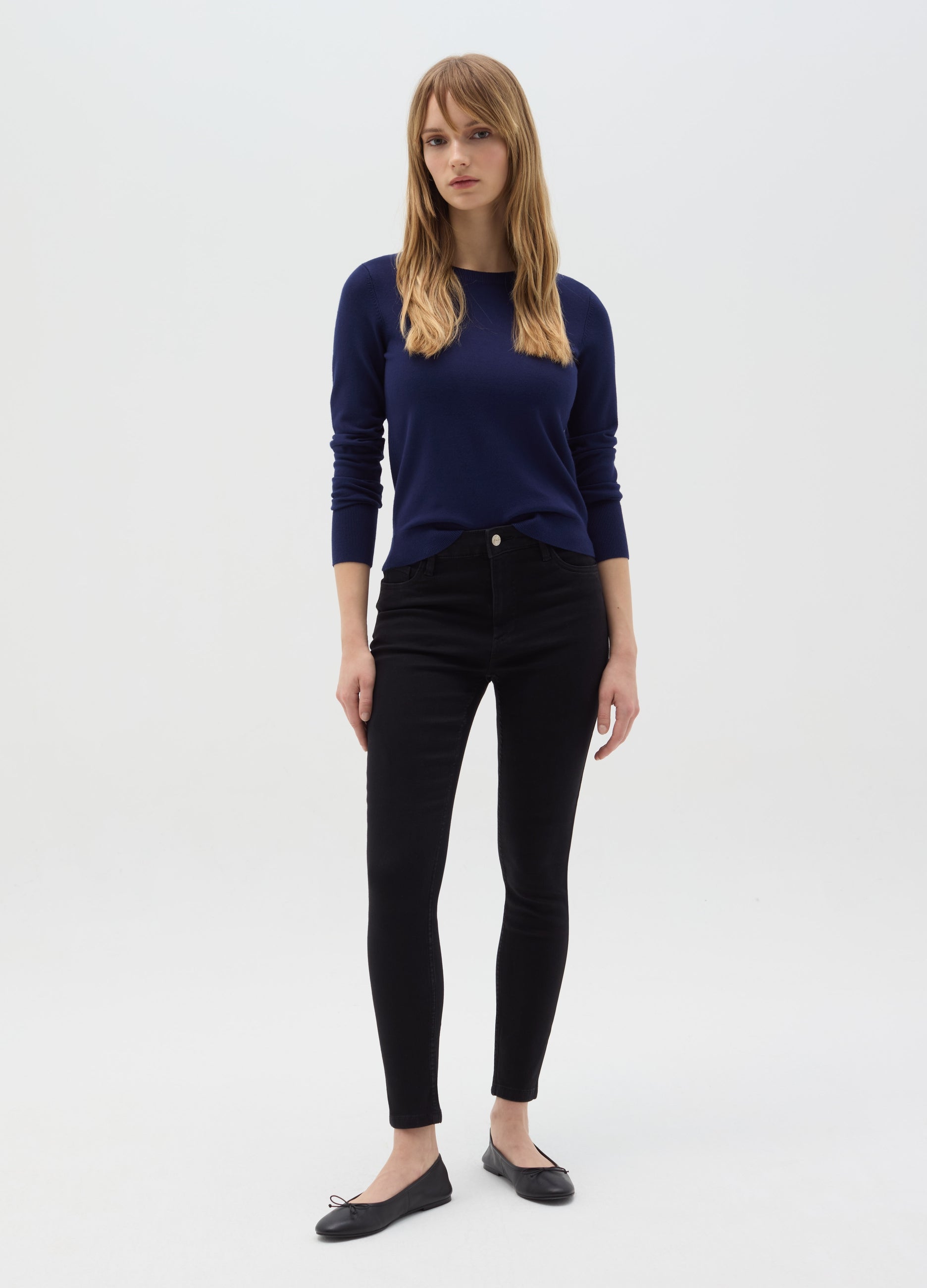 Top in viscose blend yarn. Round neck. Long sleeves. Ribbed trims.