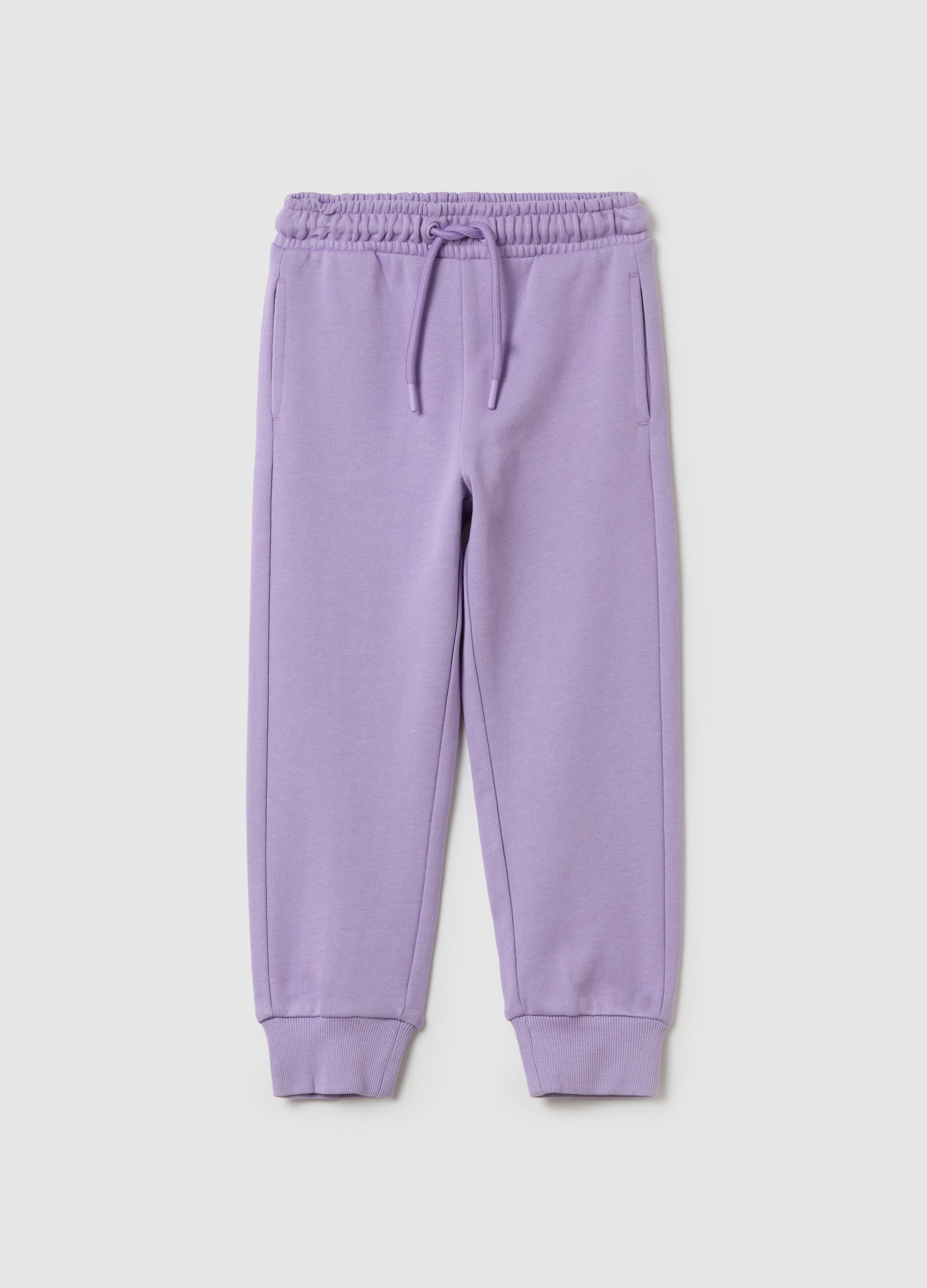 Joggers in 100% cotton plush with drawstring. Two vertical pockets. Ribbed ankle cuffs.