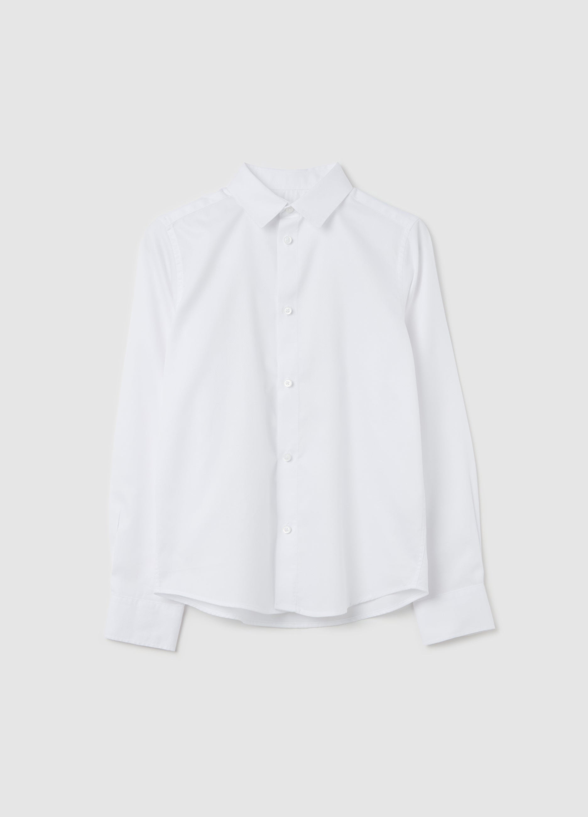 Solid colour shirt in 100% cotton. Bluff collar. Yoke with placket on the back. Button fastening.