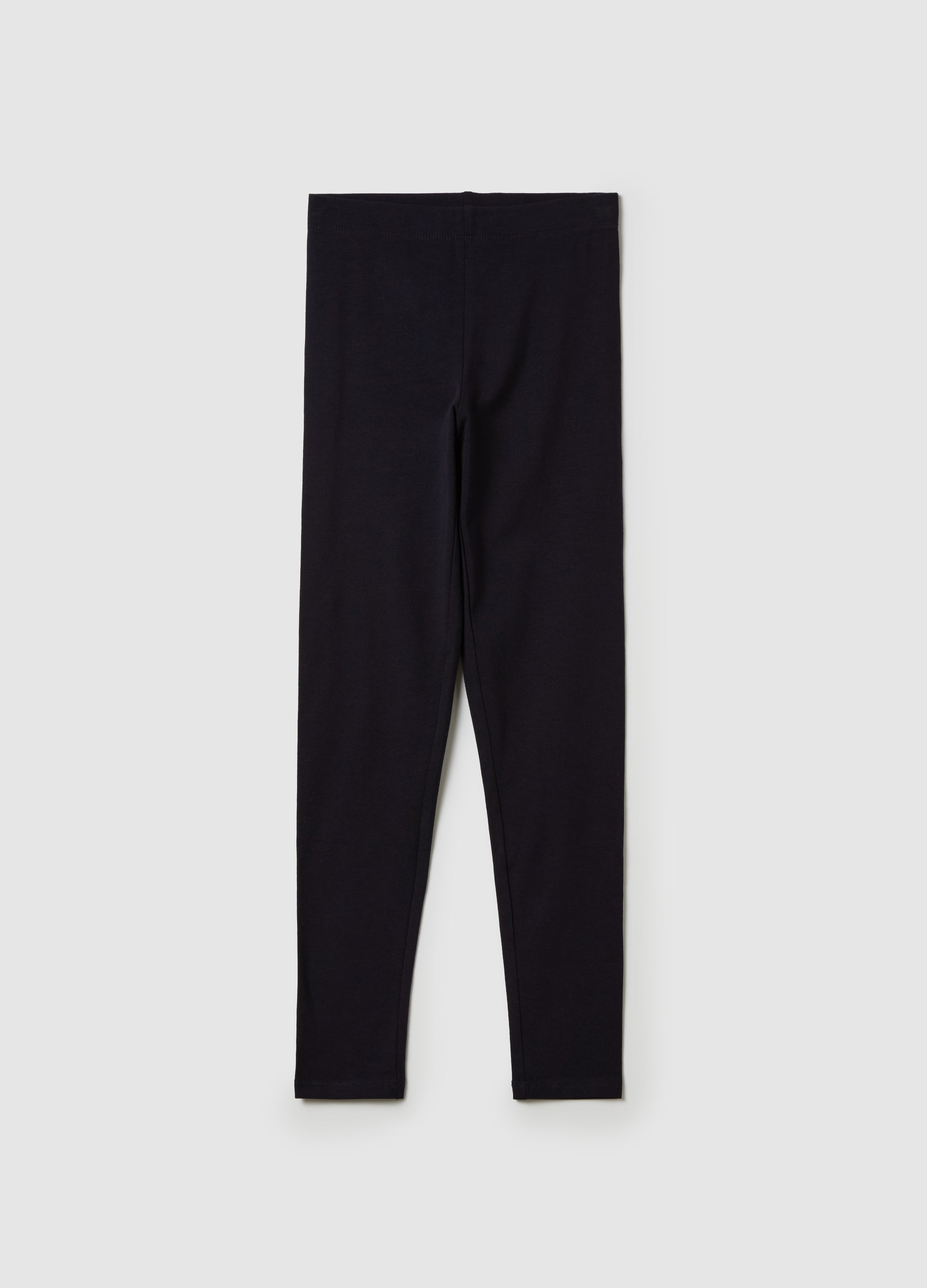 Solid colour stretch cotton leggings. Elasticated waist.