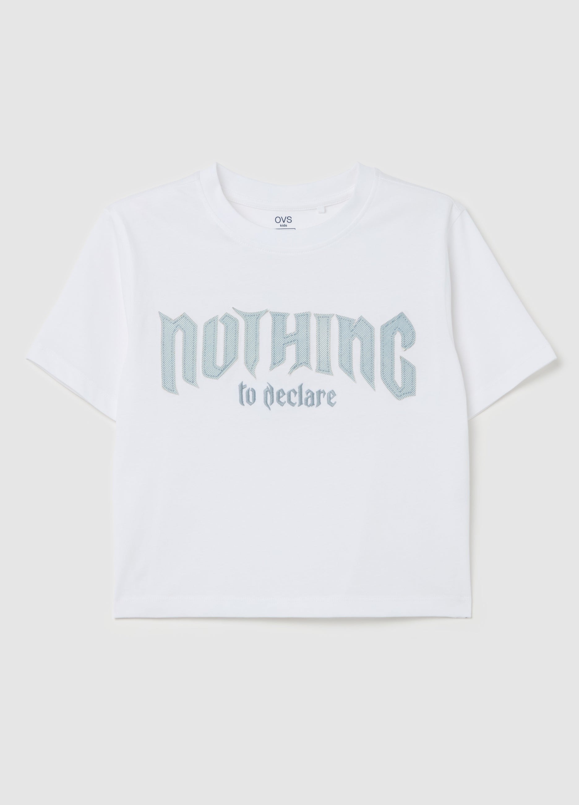 Ovs Cropped ''Nothing To Declare€� T-Shirt In Cotton