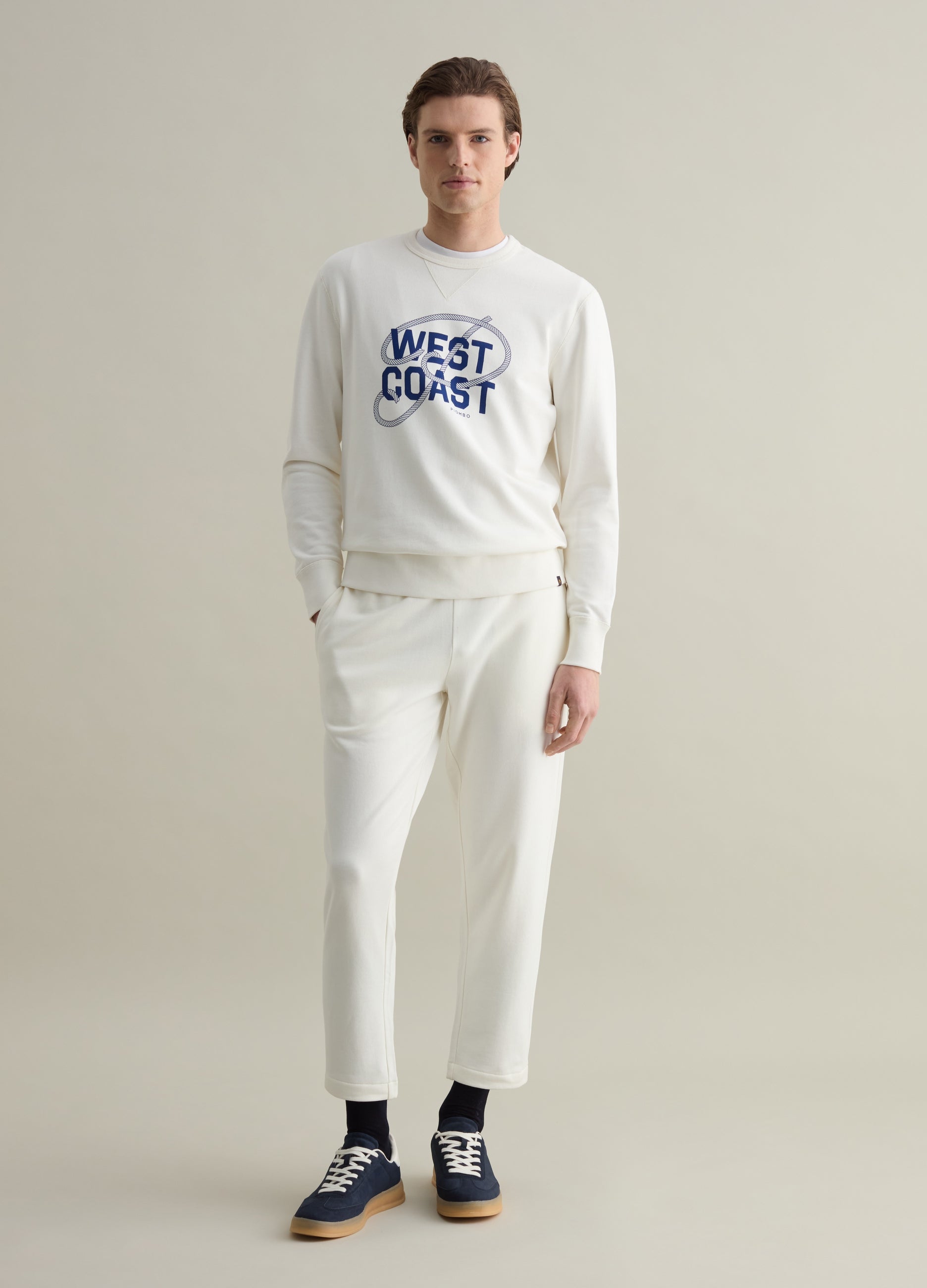 Piombo joggers in 100% cotton french terry (non-brushed fleece lining). Smock stitch at the waist with drawstring. Two vertical pockets and one patch pocket on the back. Above ankle length. Matching sweatshirt available.