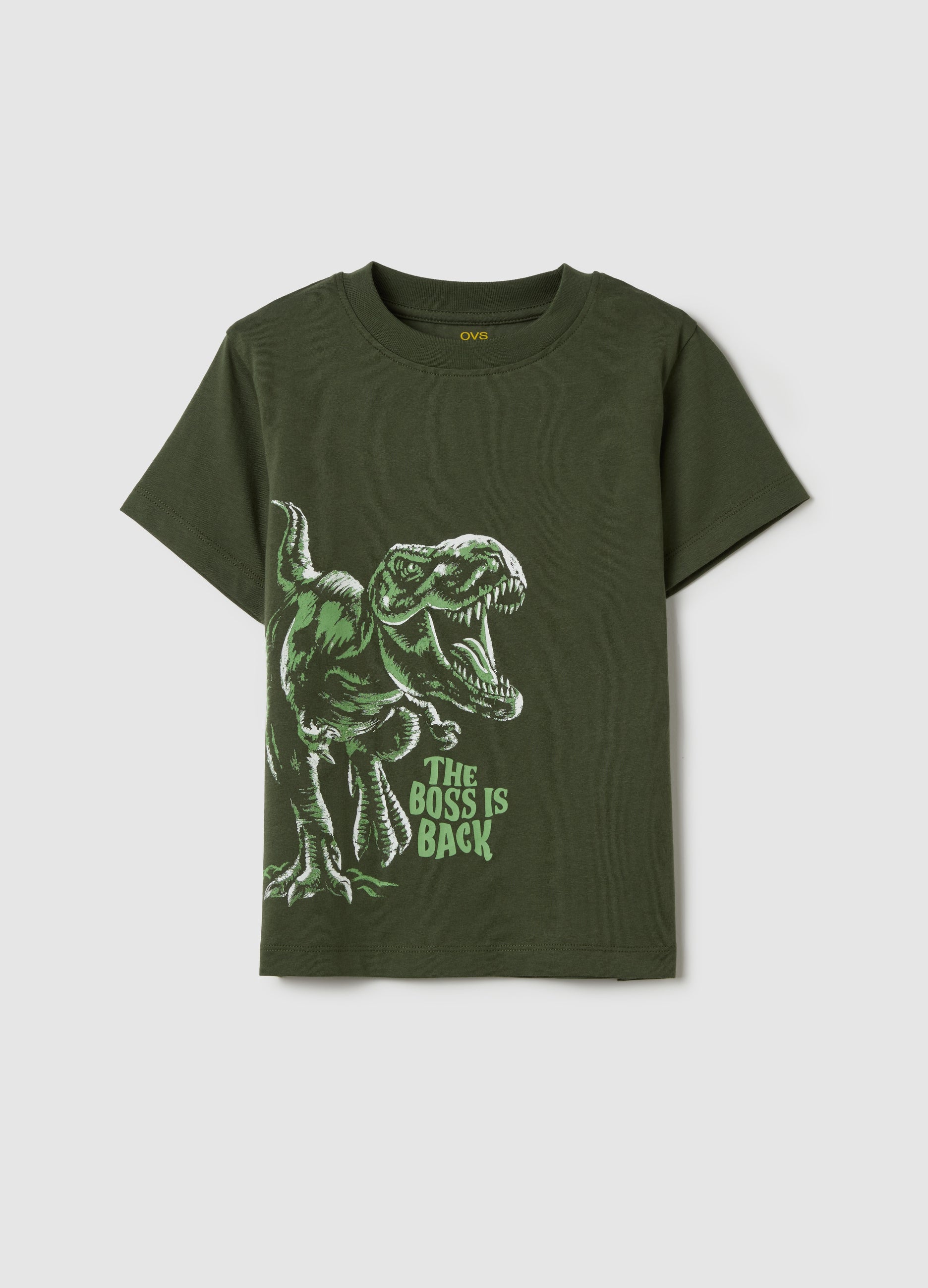 100% cotton t-shirt. Round neck. Dinosaur print and ''the boss is back'' lettering on the front.