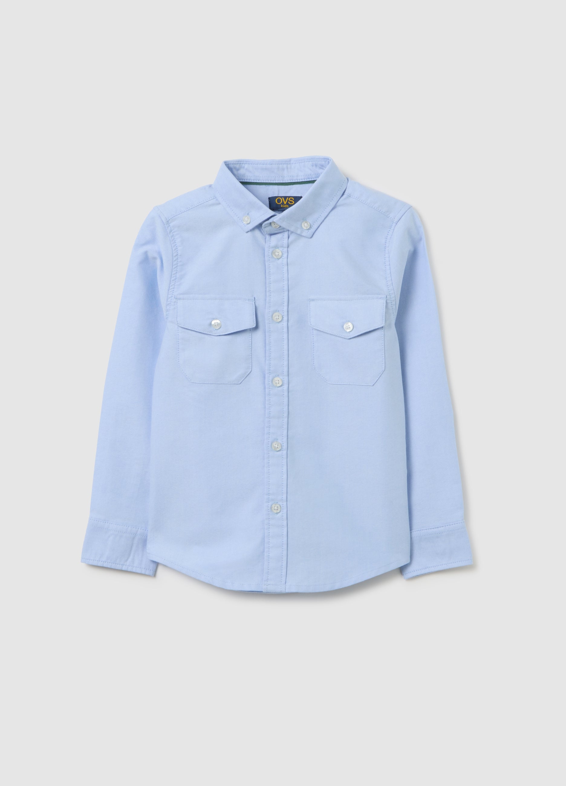 The Blue Children'S Shirt From The Ovs Kids Line Is Crafted In Pure Cotton, Providing Ideal Softness And Comfort For Autumn And Winter. This Long-Sleeved Button-Up Model Is Perfect For Children Aged 3 To 10, Making It A Versatile Piece For Casual Or Formal Occasions. Equipped With Chest Pockets And A Button-Down Collar, It Ensures A Practical Regular Fit.
