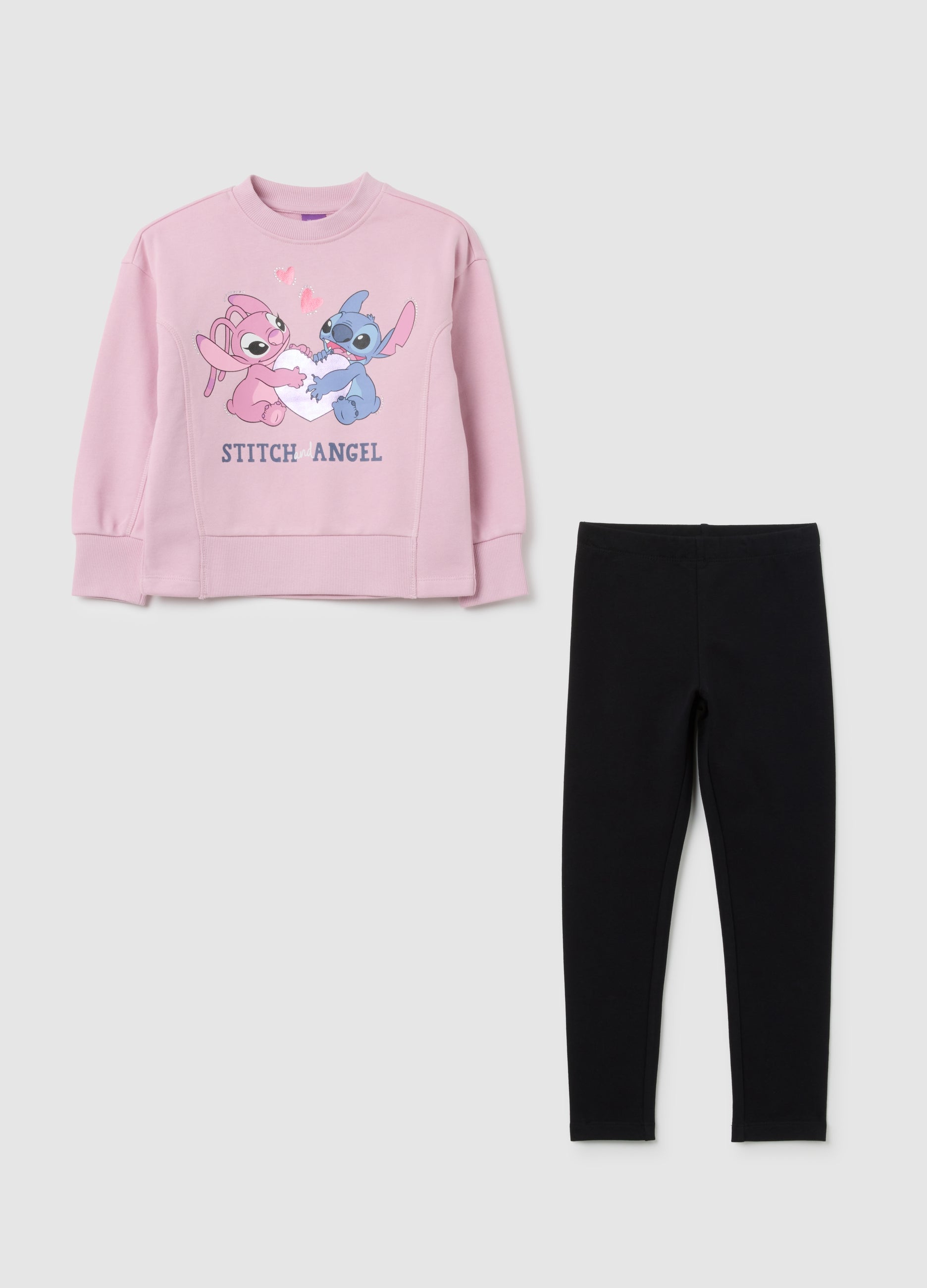 OVS Pink Cotton Girl'S Outfit With Black Stitch Print Leggings
