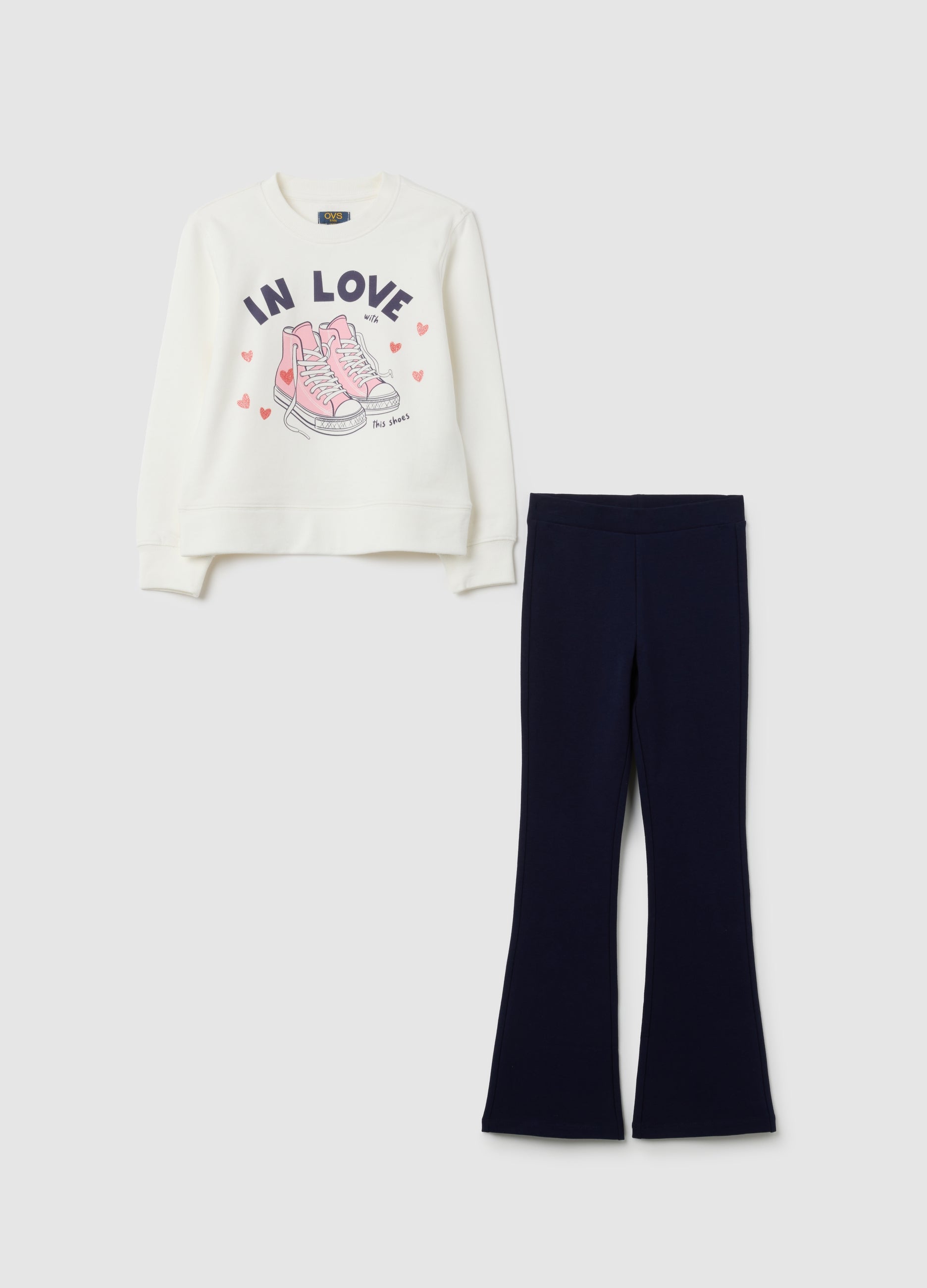 The White And Blue Stretch Cotton Outfit For Girls Aged 3 To 10 From Ovs Kids, Consisting Of A Sweatshirt And Trousers, Is Designed To Ensure Comfort And Freedom Of Movement For Everyday Adventures. The Sweatshirt Features An Attractive Print, Adding A Touch Of Style To The Wardrobe. Ideal For Everyday Use, This Set Is Perfect For Daily Activities.
