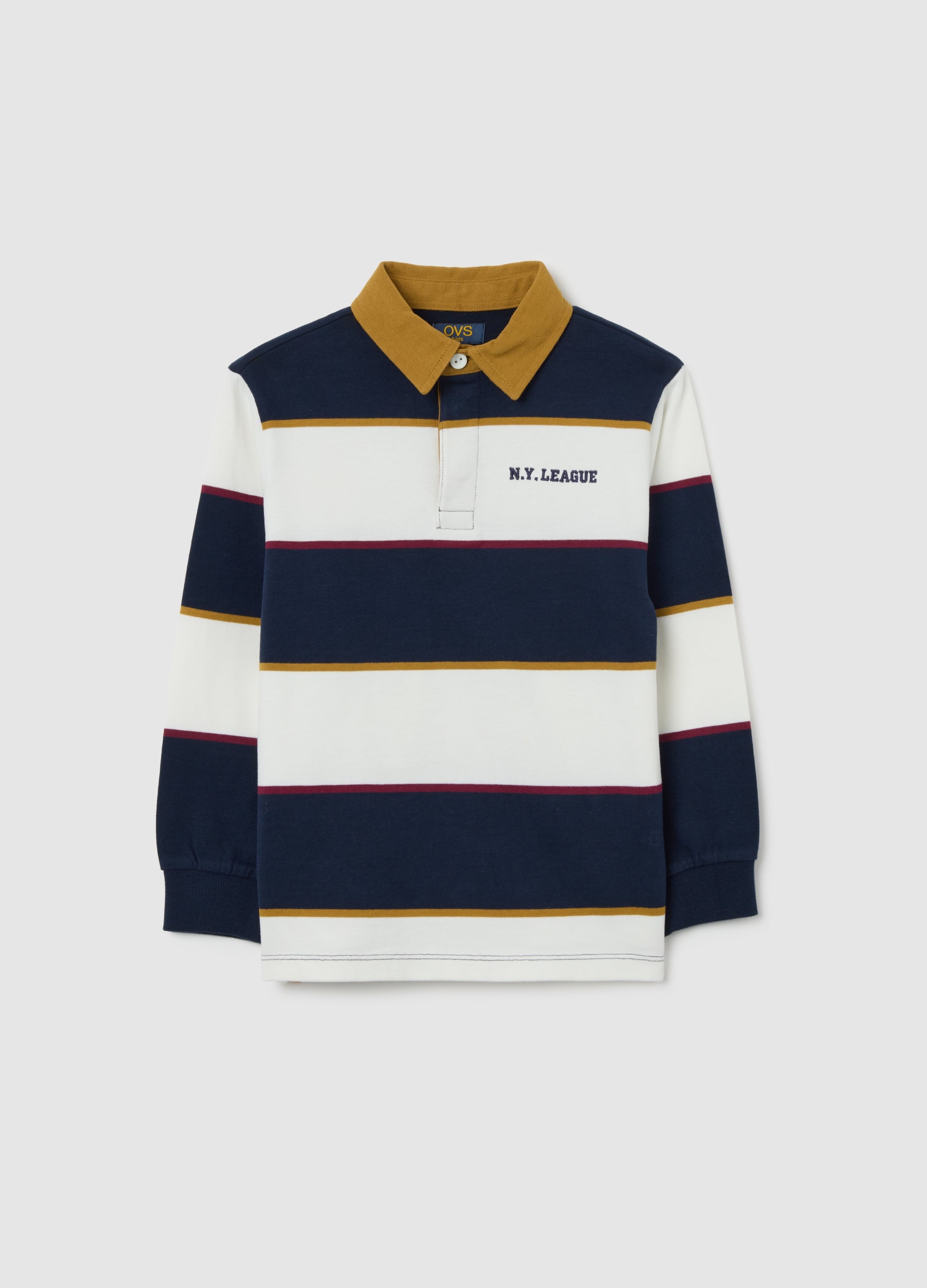 The blue striped pure cotton polo from the OVS KIDS line for children aged 3 to 10 ensures softness and breathability, perfect for cooler months. The pointed collar and button closure offer a classic look, ideal for everyday wardrobe.