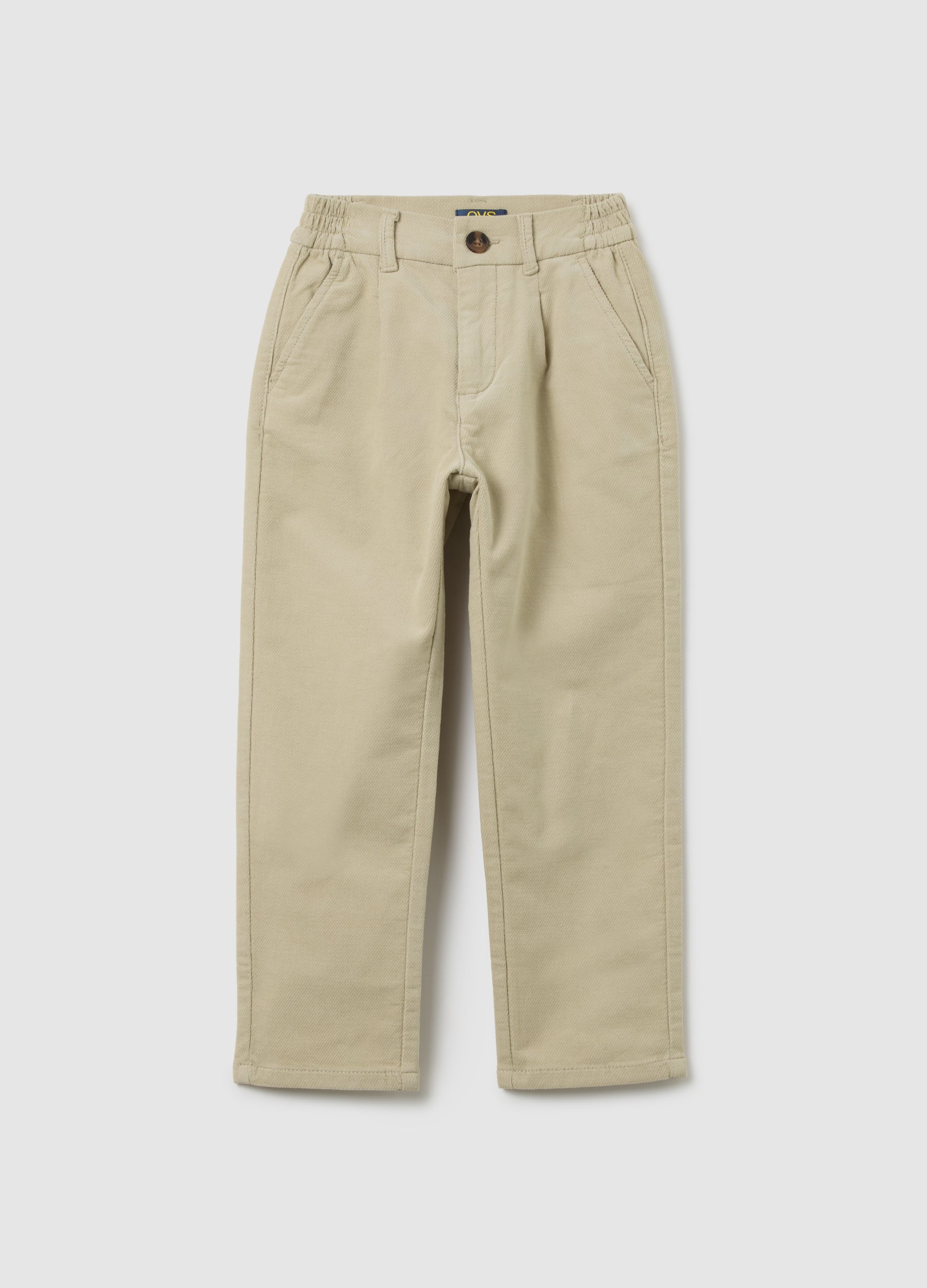 OVS Children'S Beige Stretch Cotton Blend Trousers With Regular Fit