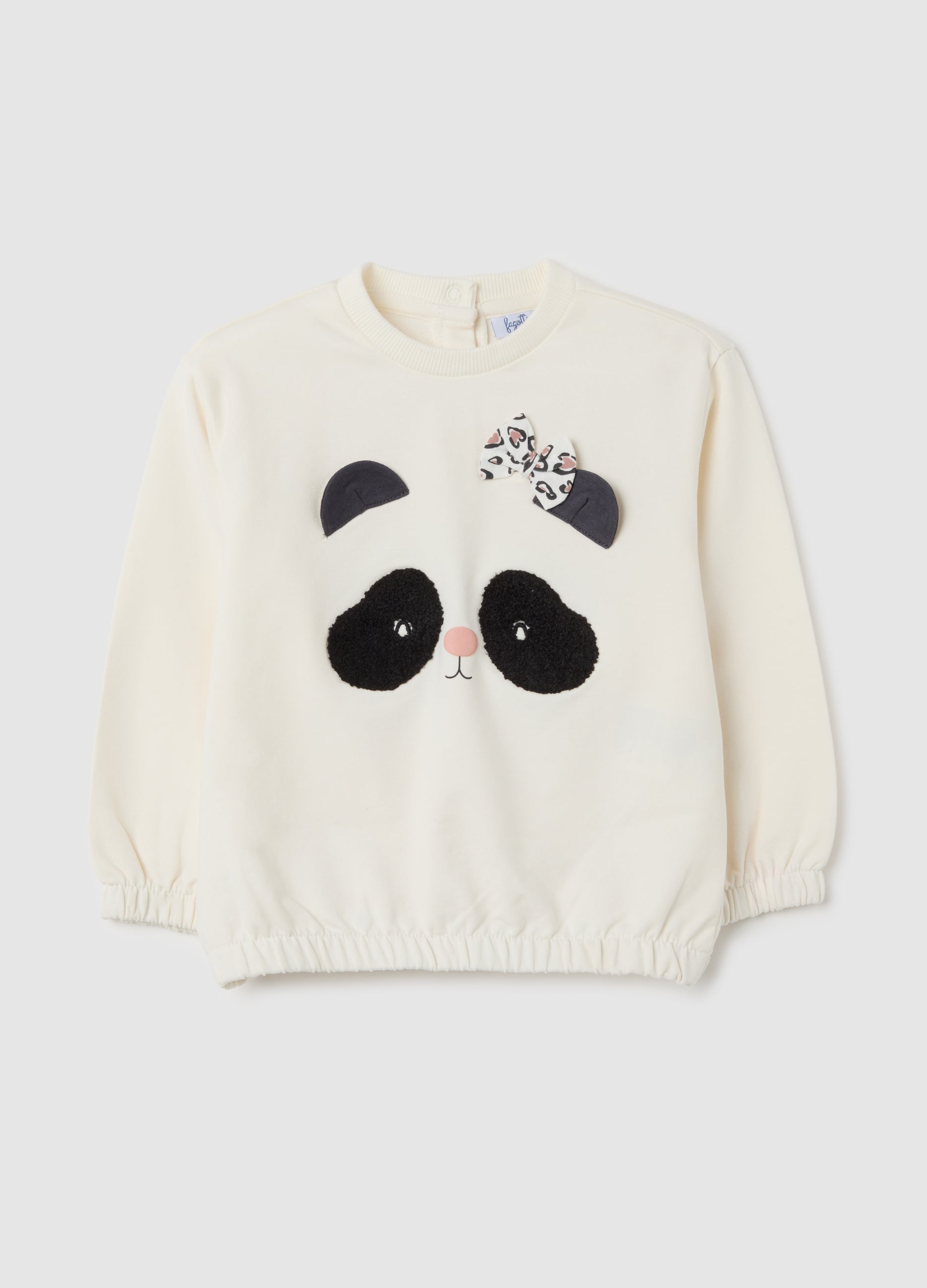 This Sweatshirt For Baby Girls Aged 9 To 36 Months, In Beige Stretch Cotton From The Fagottino Line, Ensures Comfort And Freedom Of Movement. The Design Features A Round Neckline And A Panda-Shaped Embroidery On The Front For A Unique Touch. Long Sleeves And Elasticated Cuffs Provide A Comfortable Fit, Perfect For The Autumn Season.