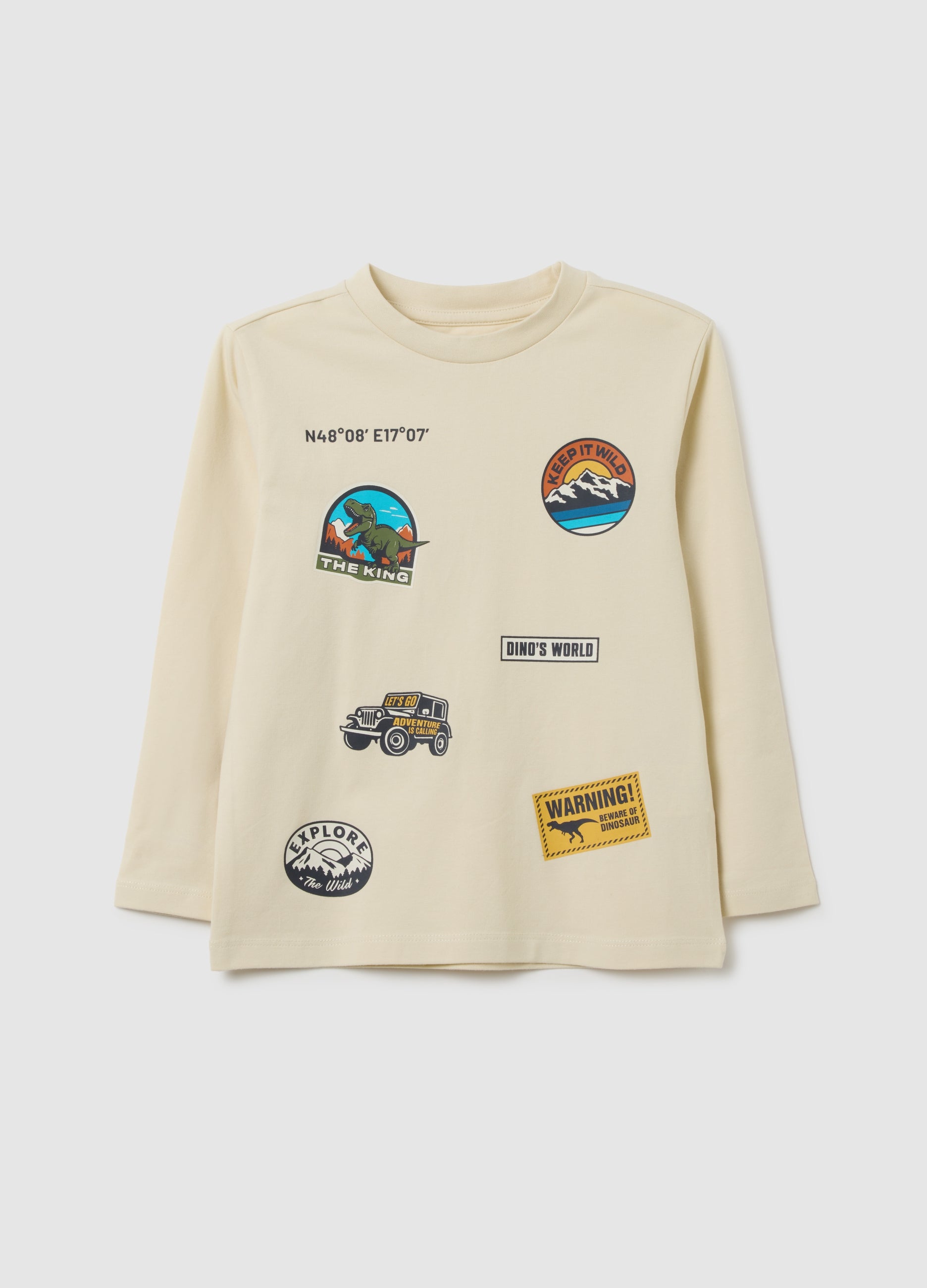 The Long-Sleeved Top For Children Aged 3 To 10 Years In Beige Stretch Cotton From The Ovs Kids Line Features Colourful Prints That Enhance The Design. This Garment Is Ideal For Everyday Looks, Easily Paired With Jeans Or Casual Trousers.