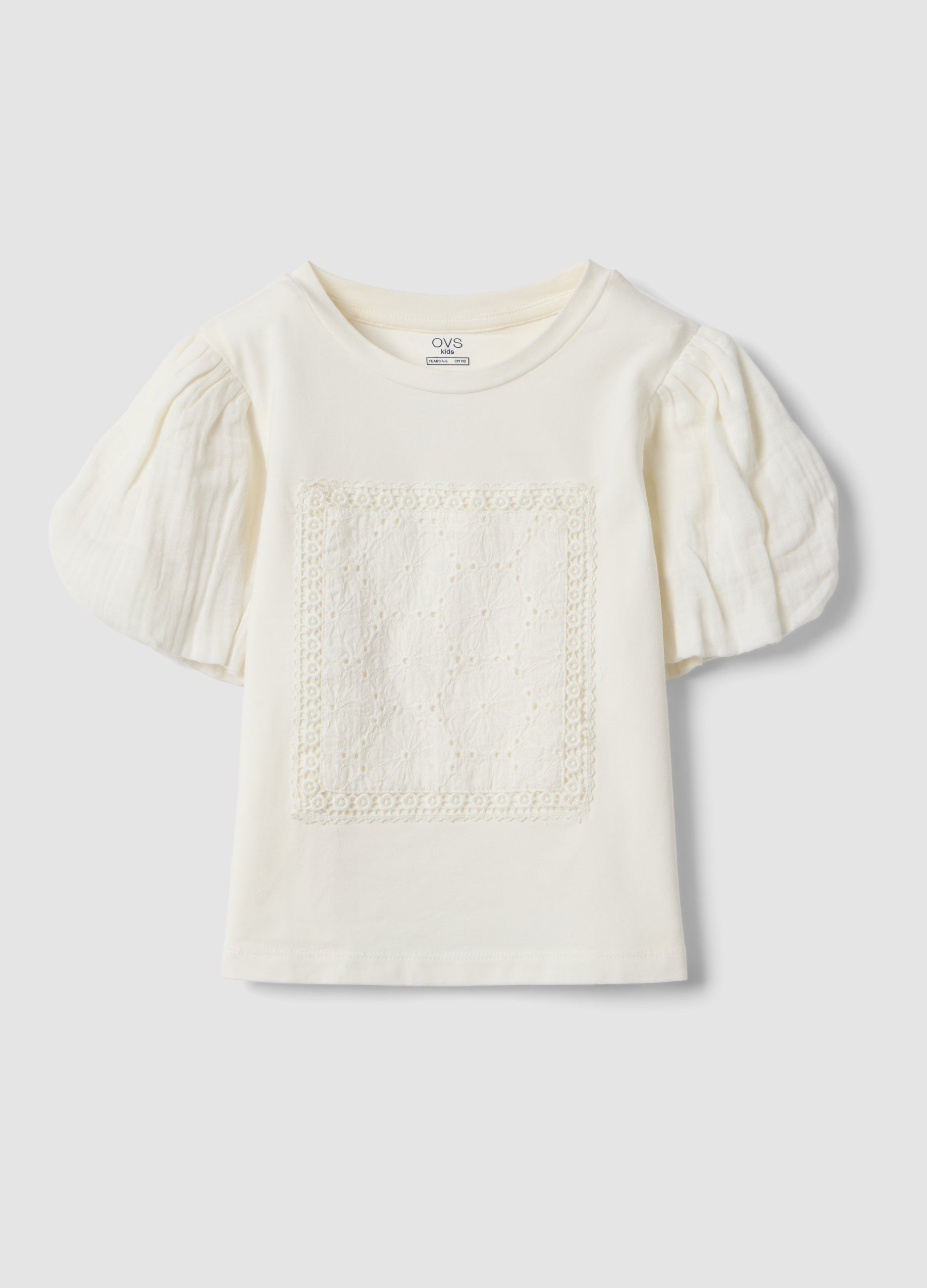 The White T-Shirt From The Ovs Kids Line Is Made Of Stretch Cotton, Ensuring Comfort And Softness For Girls Between 3 And 10 Years Old. It Features Short Sleeves With A Unique Design And Cut-Out Details Enhancing The Design. Perfect For The Spring-Summer Season, It Ensures A Regular Fit Allowing Freedom Of Movement, Making It A Versatile Piece In Little Girls' Wardrobes.