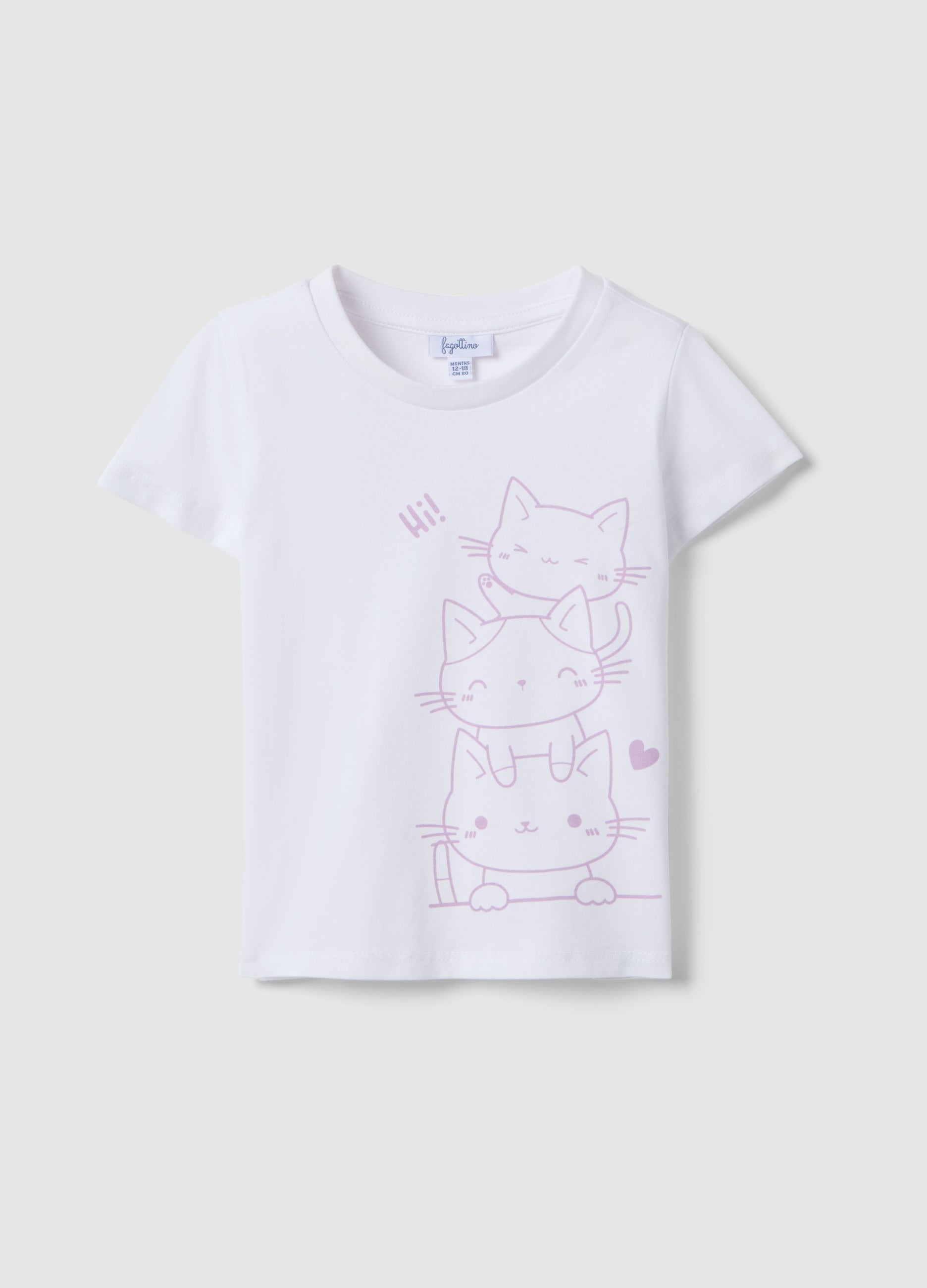 This White T-Shirt From The Fagottino Line Is Made Of Pure Cotton To Ensure Softness And Comfort For Girls Aged 9 To 36 Months. It Features A Cheerful Design With A Cat Print, Perfect For Warm Days. The Regular Fit And Round Neckline Provide A Practical Fit. An Essential Garment, Ideal For Everyday Wear.