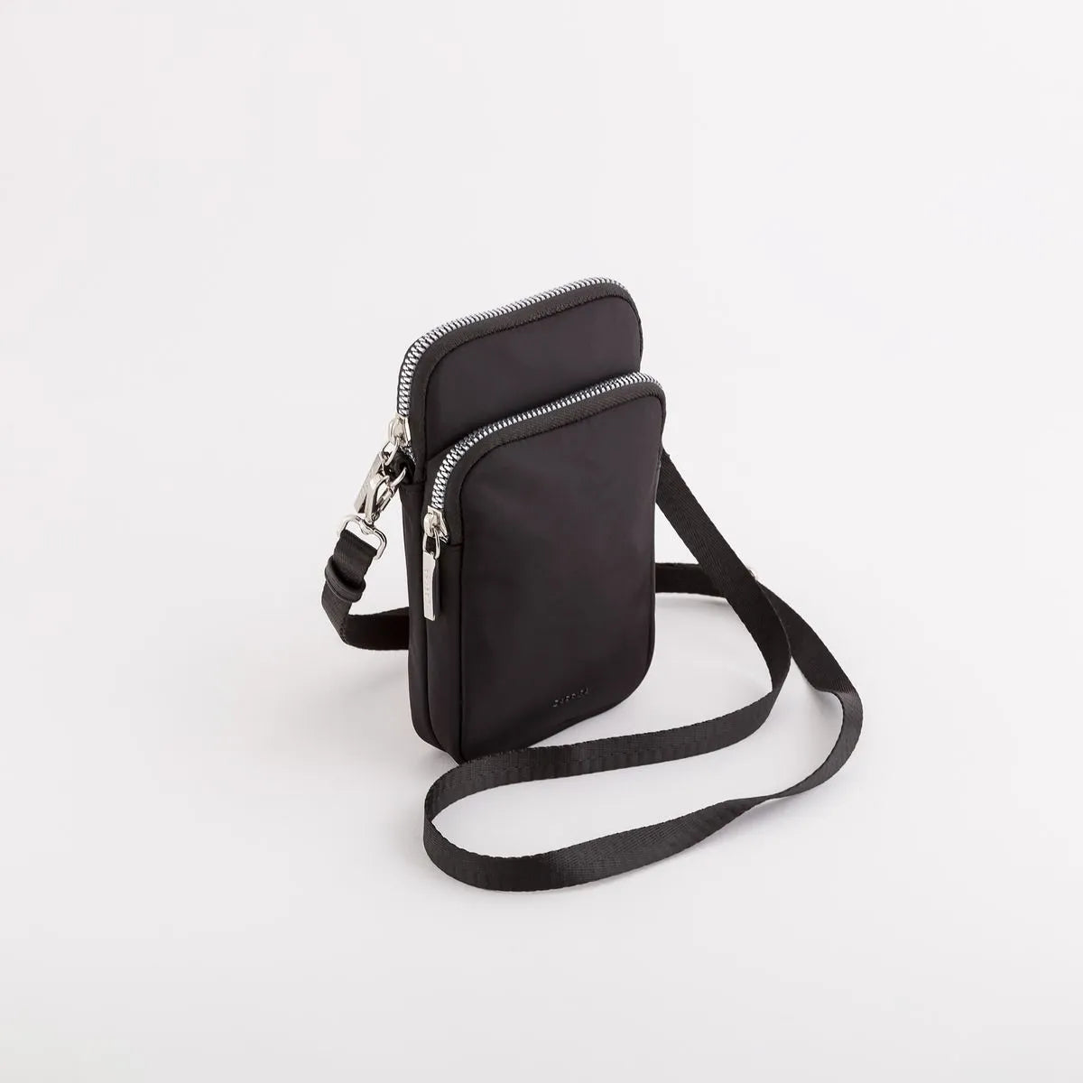 Phone holder from the Eloisa line by Carpisa in nylon. Equipped with a removable strap and an external zip pocket. A practical and functional accessory for those who prefer to carry only the essentials.