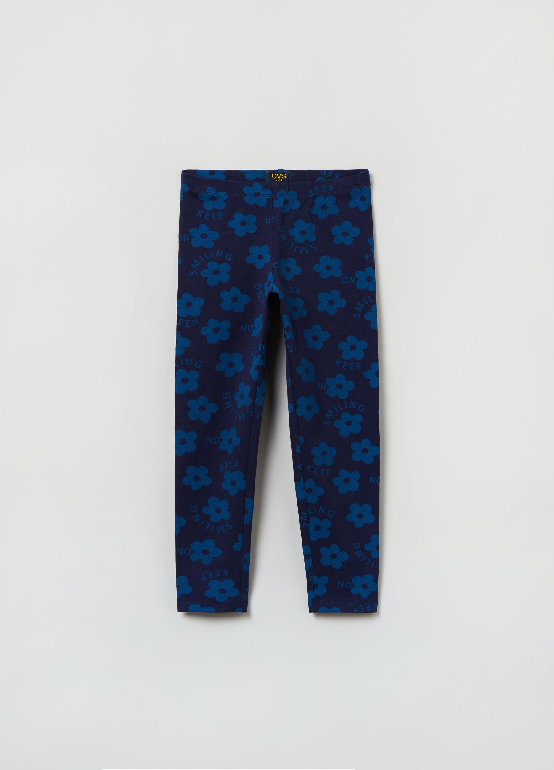Ovs Kid Girls Stretch Cotton Leggings With Floral Print